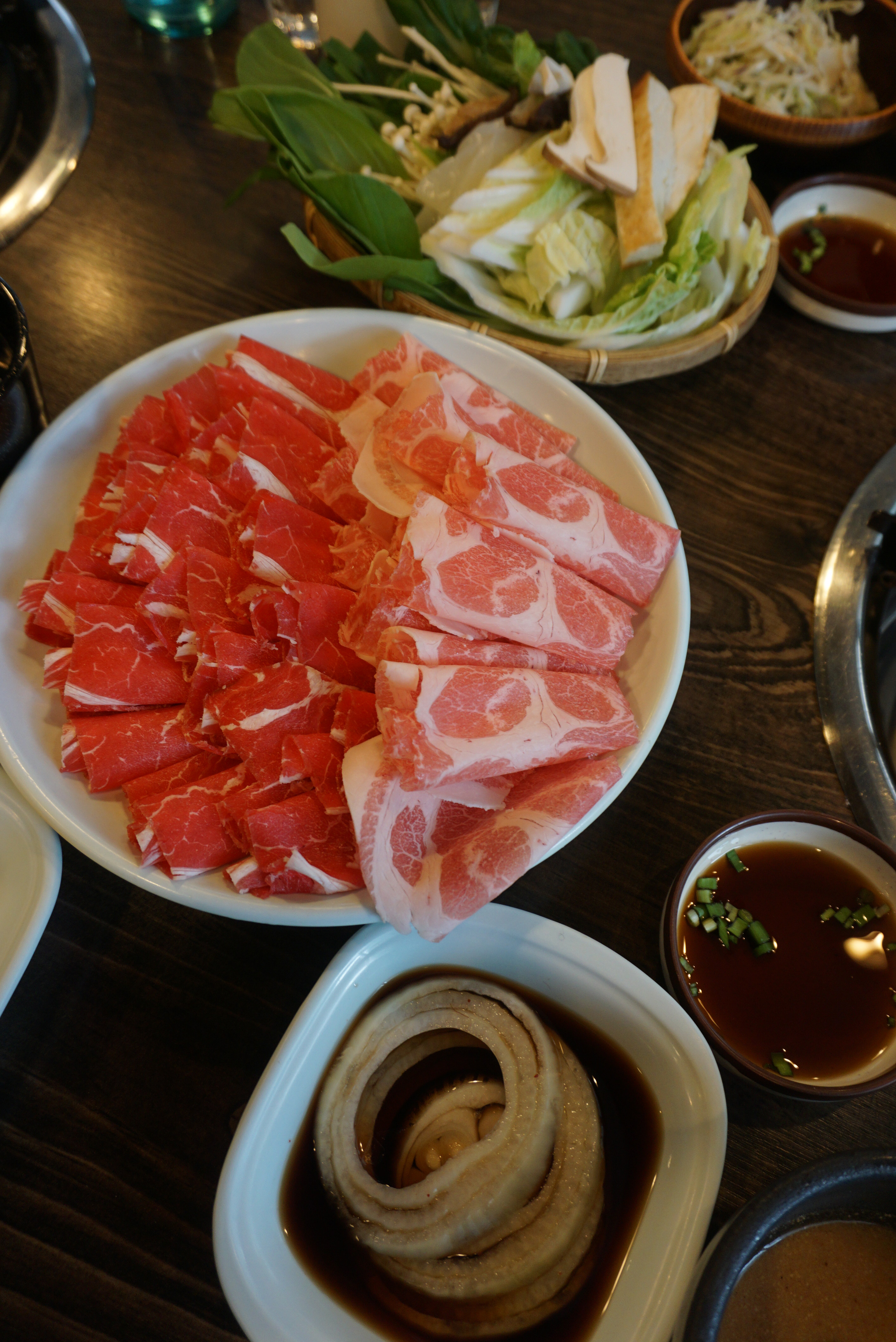 조미료를 사용하지 않고 표고버섯과 다시마 등으로 우린 육수의 깔끔하고 담백한 맛이 일품인 것은 물론 일반적으로 먹는 소고기 샤브샤브 외에 돼지고기 샤브샤브도 있다는 것이 매력적이네요. 냄새도 없고 소고기보다 오히려 더 부들부들한 식감이 좋으니 꼭 맛 보길 추천합니다.