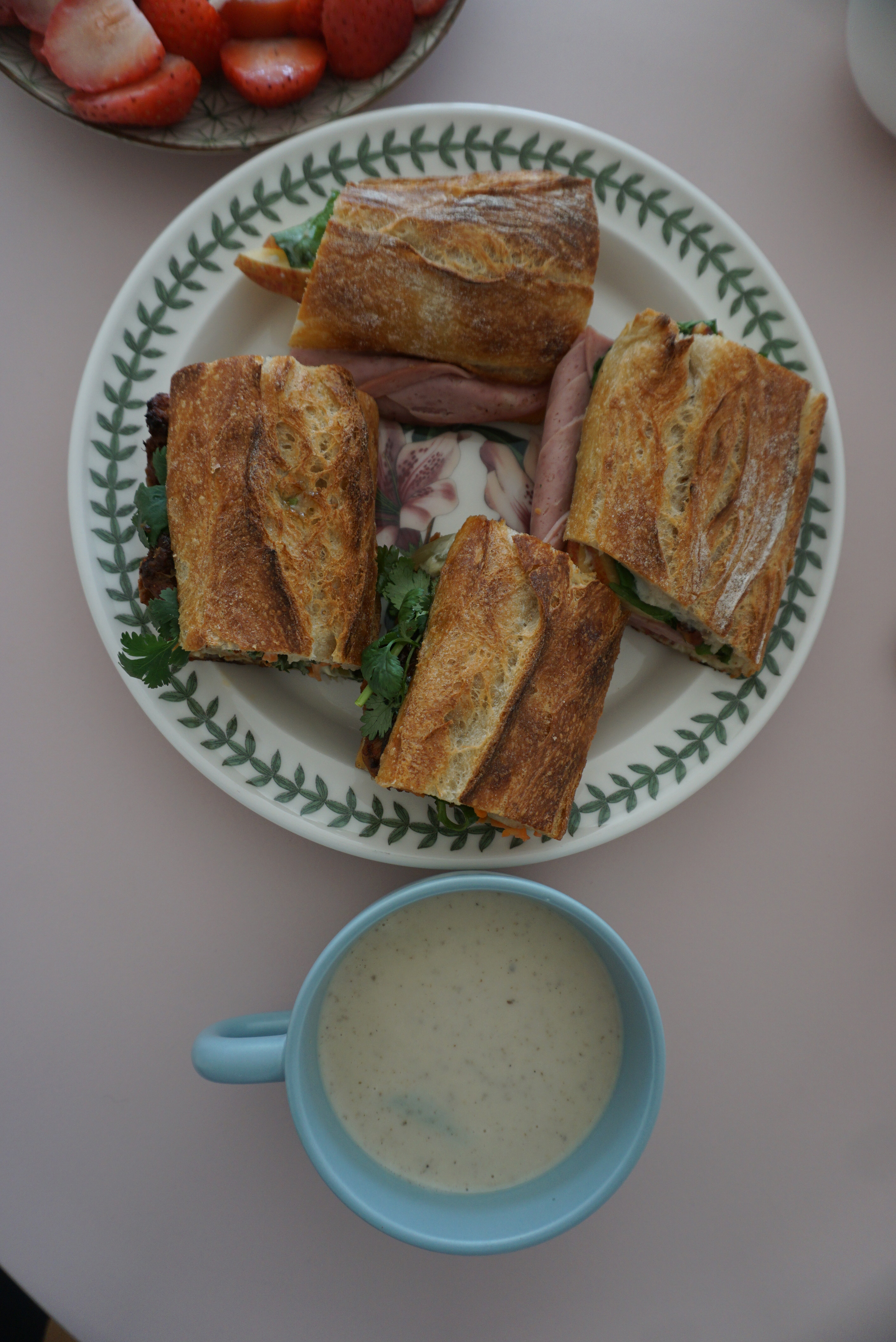 베이커리 뿐 아니라 브런치로 즐기기 좋은 메뉴들을 하나씩 맛보고 있는데, 모타델라 샌드위치·타이 레드커리 치킨 샌드위치는 한 끼 식사로도 손색이 없죠. 커피와 간단한 간식으로는 에그샐러드 샌드위치가 제격. 특히 꼭 주문해야 할 메뉴로 오늘의 스프를 강추하는데 정기적으로 종류는 변경되지만 아주 고급진 맛이라 다들 반하실 거예요.
