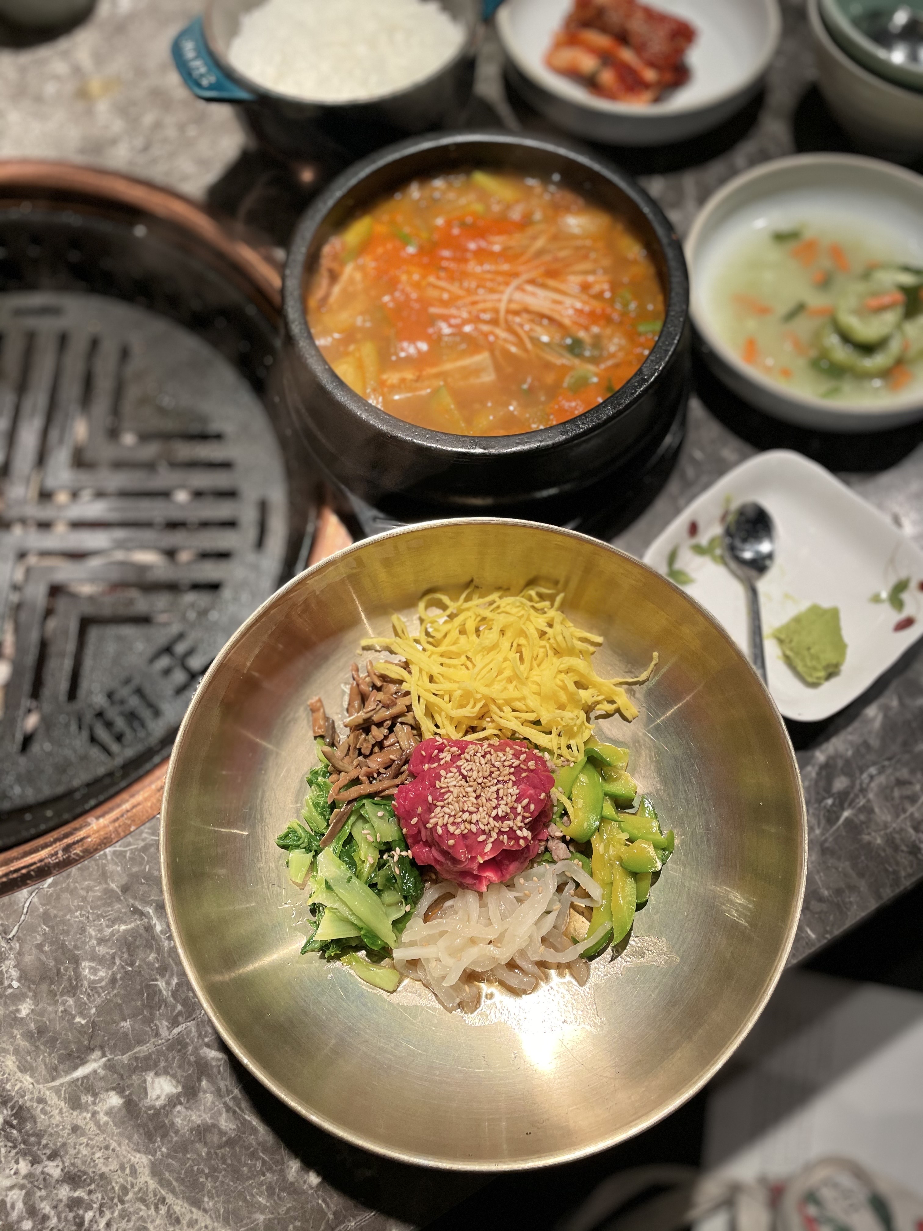 숙성한우로 유명한 이 집은 부위에 따라 1인분(150g)에 4만~5만원대인데 ‘정식 세트’(2인 기준 13만2000원)를 주문하면 합리적인 가격으로 질 좋은 한우 4가지 부위를 골고루 맛볼 수 있는 데다 야채구이, 육회비빔밥, 된장찌개까지 풀코스로 즐길 수 있으니 강추해요. 거기다가 와인 1병까지는 늘 ‘콜키지 프리’이니 이 정도면 ‘한우 식당계의 김혜자’라고 칭송해도 모자람이 없죠.