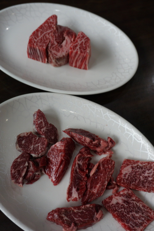 숙성한우로 유명한 이 집은 부위에 따라 1인분(150g)에 4만~5만원대인데 ‘정식 세트’(2인 기준 13만2000원)를 주문하면 합리적인 가격으로 질 좋은 한우 4가지 부위를 골고루 맛볼 수 있는 데다 야채구이, 육회비빔밥, 된장찌개까지 풀코스로 즐길 수 있으니 강추해요. 거기다가 와인 1병까지는 늘 ‘콜키지 프리’이니 이 정도면 ‘한우 식당계의 김혜자’라고 칭송해도 모자람이 없죠.