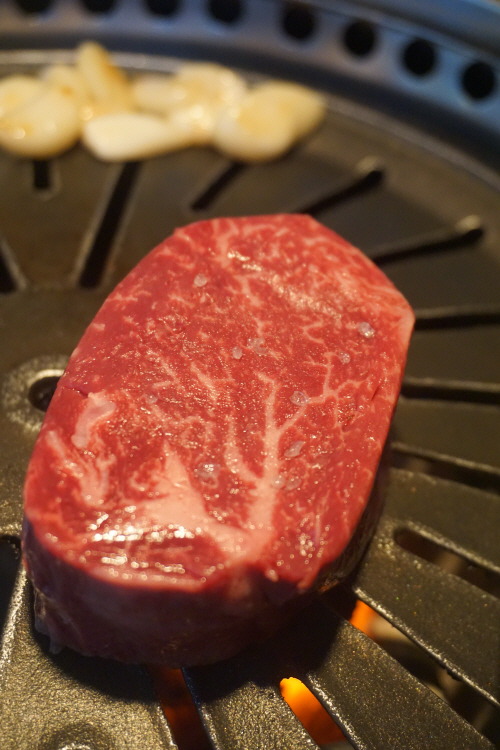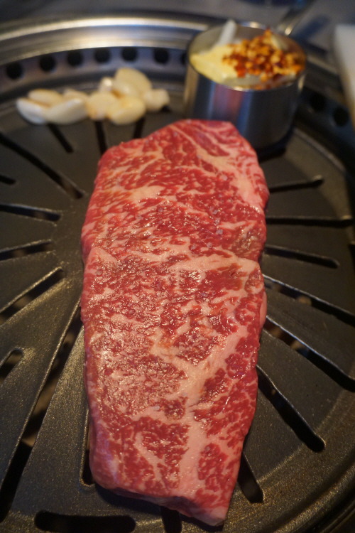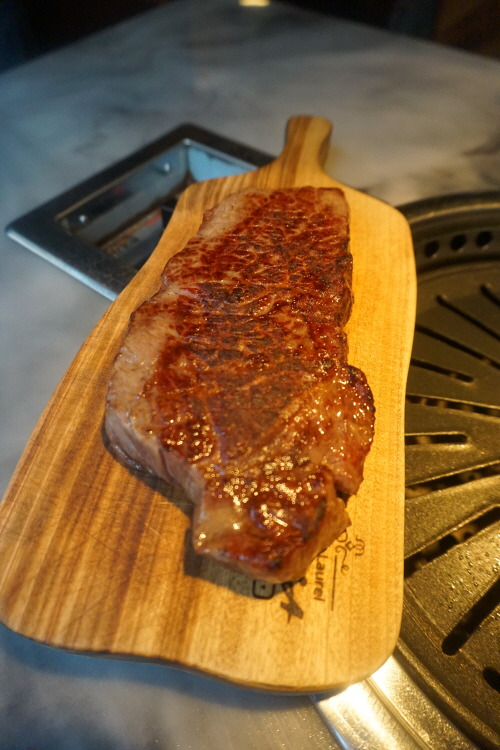 고기는 시작부터 끝까지 직원이 숙련된 솜씨로 구워 주니 편하게 입 속으로 줍줍하면 돼요. 육즙과 육향이 잘 느껴지는 고기 한 점을 입안에서 영접하면 이때만은 세상 부러울 것이 없죠. 양념으로는 명품 소금과 생와사비가 준비돼 있고요. 마늘·양파·레드페퍼 등을 넣은 버터소스는 거의 반칙 수준의 조합. 식사로 나오는 된장찌개 맛도 일품인 데다 주물솥에 바로 지어나오는 밥과 육회비빔밥도 퀄리티가 만만찮답니다.