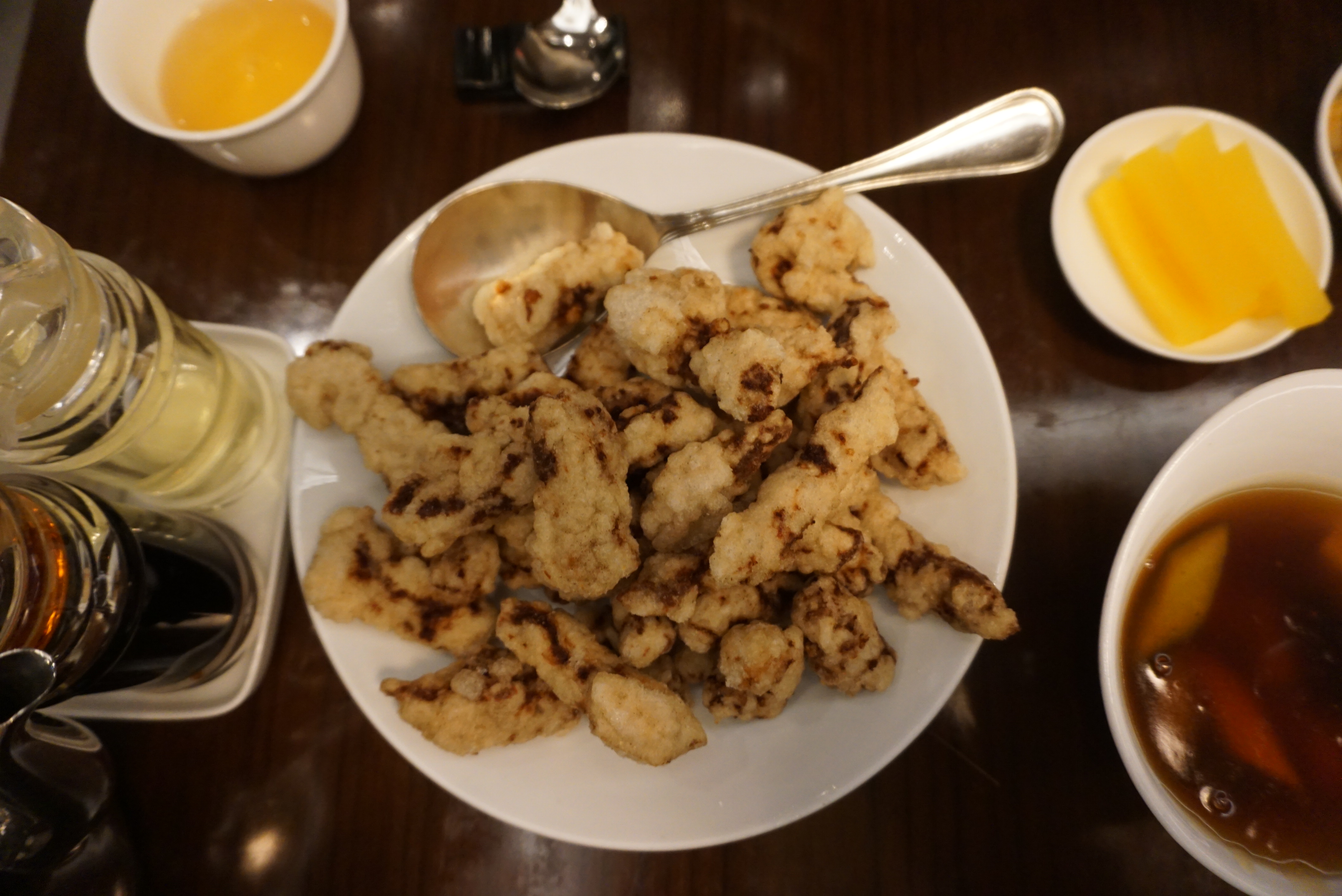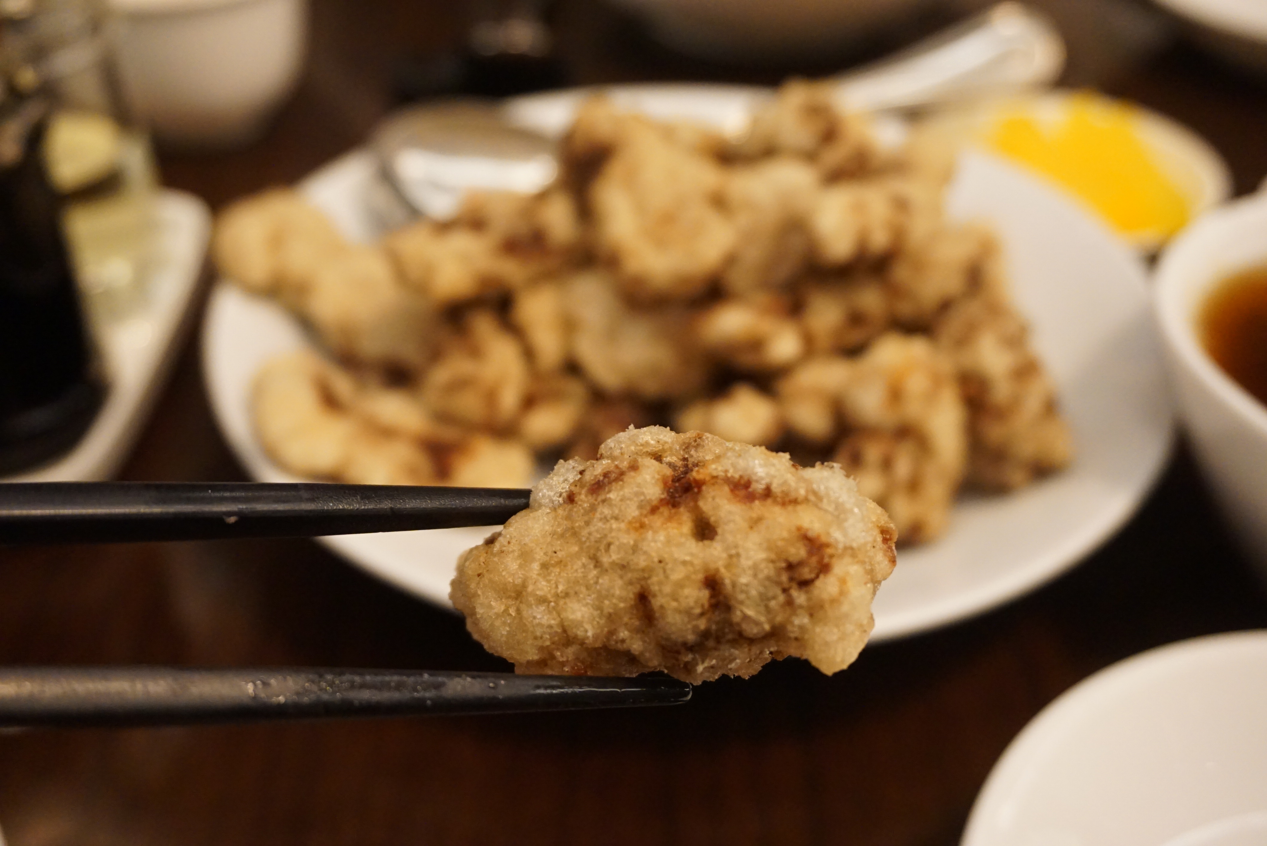 부드럽고 두툼한 한우살과 두껍지 않은 찹쌀튀김옷이 시스루룩으로 유혹하니 이건 안 넘어가고는 못 배길 비주얼이죠. 한 입 베어물면 바삭 촉촉 황홀한 혀끝이 그냥…. 깨끗한 기름을 사용했다는 것이 주방을 확인해 보지 않아도 입안에서 느껴지더군요. 4만원이라는 가격은 좀 사악하지만 입에서는 사르르 녹으니 마음도 녹아버릴 듯합니다. 따로 나오는 소스에 찍어 먹어도, 그냥 먹어도 ‘JMT’. 곁들여 먹는 반찬인 짜사이도 아주 맛깔나서 젓가락질이 바빠지네요.