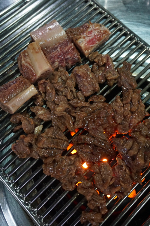 이 집의 간장양념 한우 소갈비는 적당히 달달한 맛으로 남녀노소 모두 즐길 수 있다는 게 매력이죠. 연탄불 위에서 타지 않게 자주 뒤집어 가며 구운 고기를 먹다 좀 느끼하다 싶을 땐 칼칼한 상추 겉절이를 곁들여 먹으면 금삼첨화. 1인분에 2만4000원으로 한우치고는 상대적으로 저렴하다 느껴지는 가격에 ‘폭풍먹방’을 하다 보면 연탄불 위 ‘소느님’은 어느새 자취를 감추고 남는 것은 ‘텅장’뿐~.