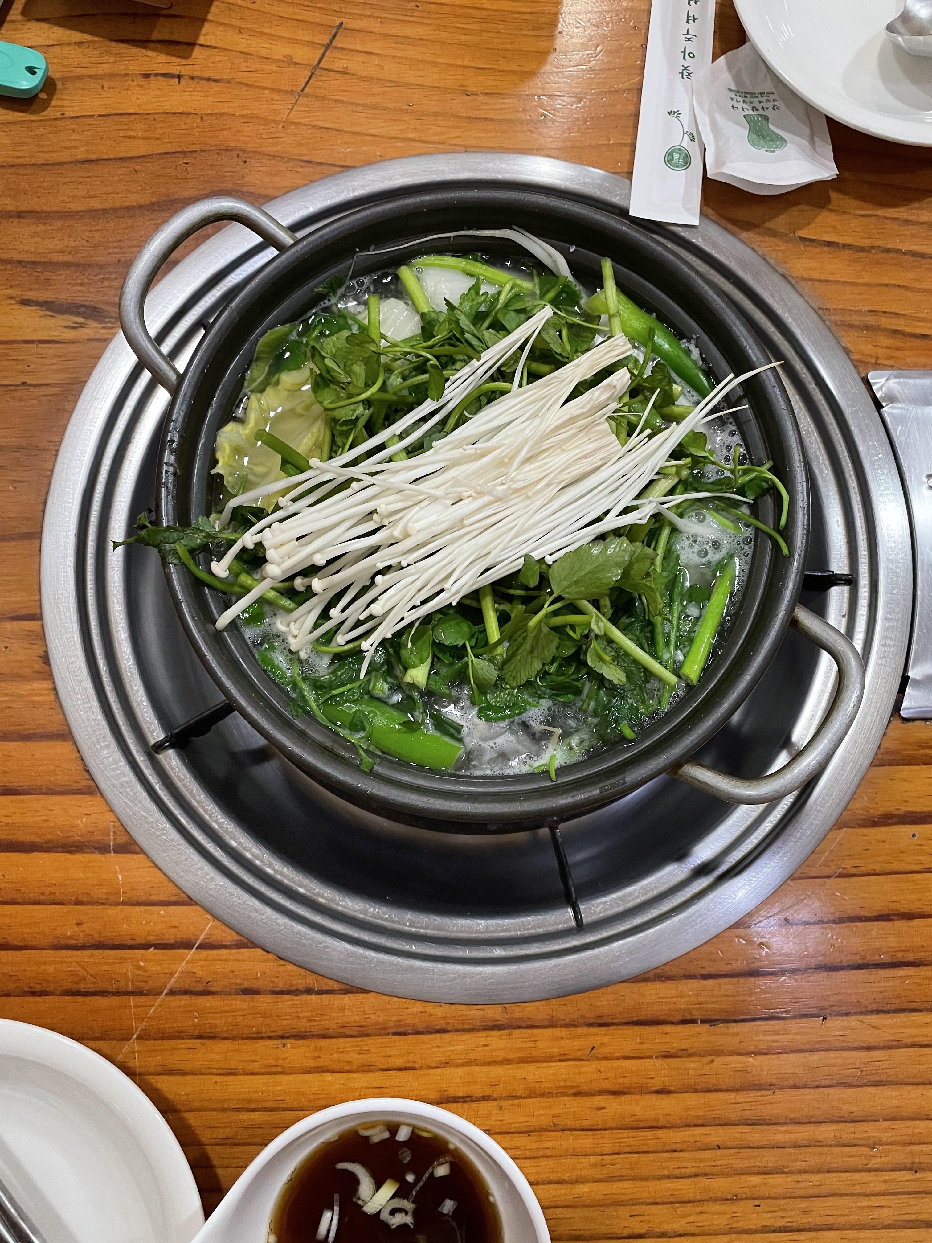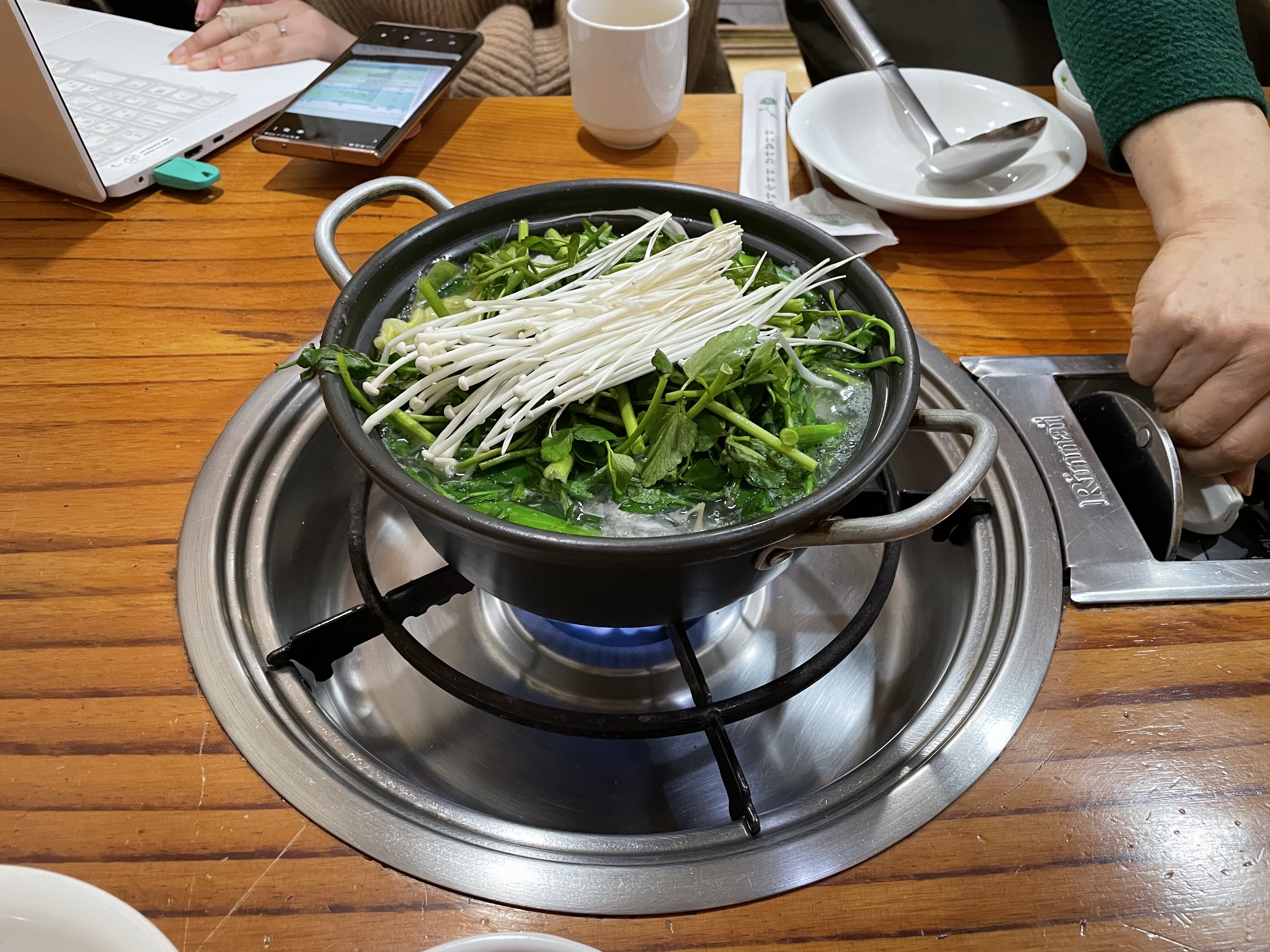 복어는 알코올을 분해하는 성분이 들어 있어 숙취 해소에 더할 나위 없이 좋은 생선인데요. 아스파라긴산이 있는 콩나물과 피를 맑게 해주는 미나리를 함께 곁들여 먹으니 두말할 나위가 없는 해장 메뉴. 미나리탕으로 착각될 만큼 듬뿍 얹어져서 나오는 복맑은탕이 끓어오르면 미나리와 버섯 등 야채부터 건져 새콤한 간장소스에 살짝 찍어 먹으면 되는데, 향긋한 그 내음에 봄이 입 안 가득 들어온 느낌이더라고요.