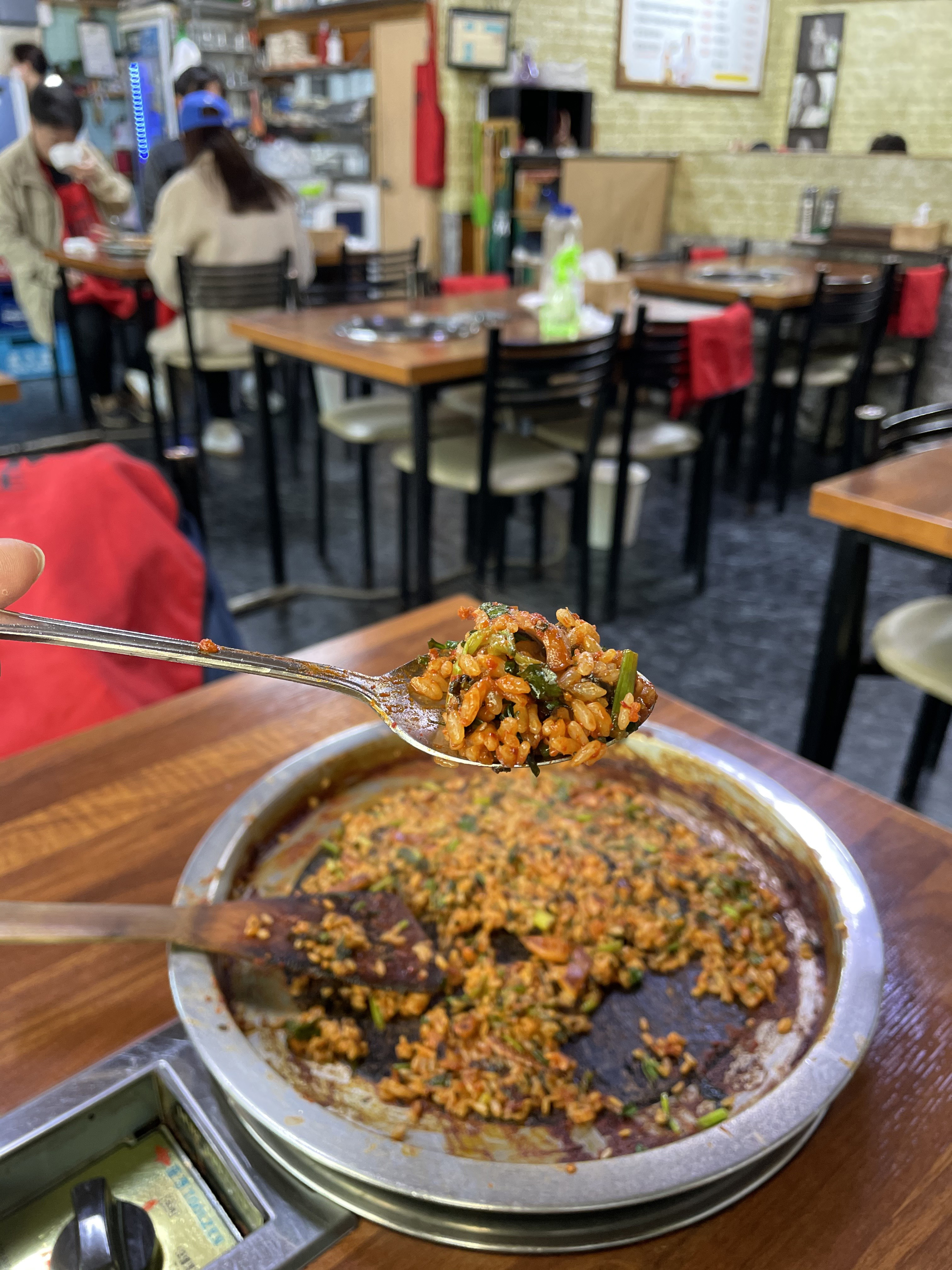 미나리는 추가도 가능해요. 공깃밥에 미나리, 김가루, 참기름을 넣고 볶는 볶음밥도 안 먹고 가면 섭섭하고요. 맛도 좋고 가성비도 좋은 ‘오첨지’, 매장의 청결도가 살짝 부족한 점만 개선된다면 더 좋겠어요.
