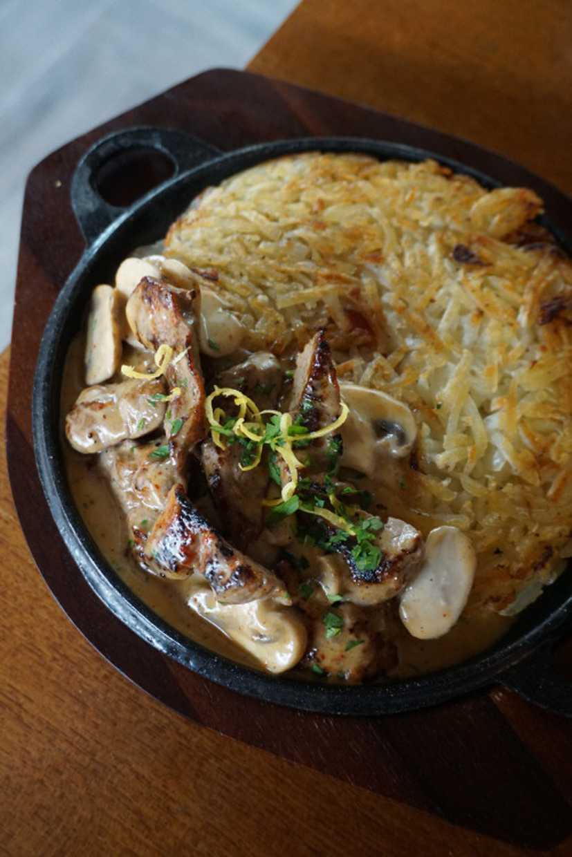 그중에 ‘러스티’는 감자를 얇게 채 썰어 팬에 노릇노릇하게 구운 다음 수제 소시지, 훈제연어, 쇠고기, 치즈 등 취향에 맞는 재료들을 곁들여 먹는 요리예요. ‘브라트부르스트 소시지 러스티’와 ‘취리히 스타일의 버섯 크림소스 송아지 안심 러스티’가 인기메뉴라고…. 소금·후추로 간이 알맞게 잘 된 감자는 아주 담백하고, 송아지 안심은 입에서 사르르 녹는 듯해 요들송이 절로 나오는 맛이네요. 버섯 크림소스가 부드럽게 재료들의 밸런스를 돕더라고요.