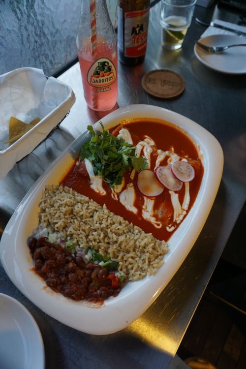 새우타코 외에 또 한 가지 인기 메뉴는 ‘브리스킷 엔칠라다와 칠레 아르볼 살사’인데요. ‘엔칠라다’라는 요리는 토르티아 속에 시즈닝된 고기와 치즈를 넣어 오븐에 굽고 다양한 소스를 곁들여 먹는 멕시코 전통 음식이랍니다.