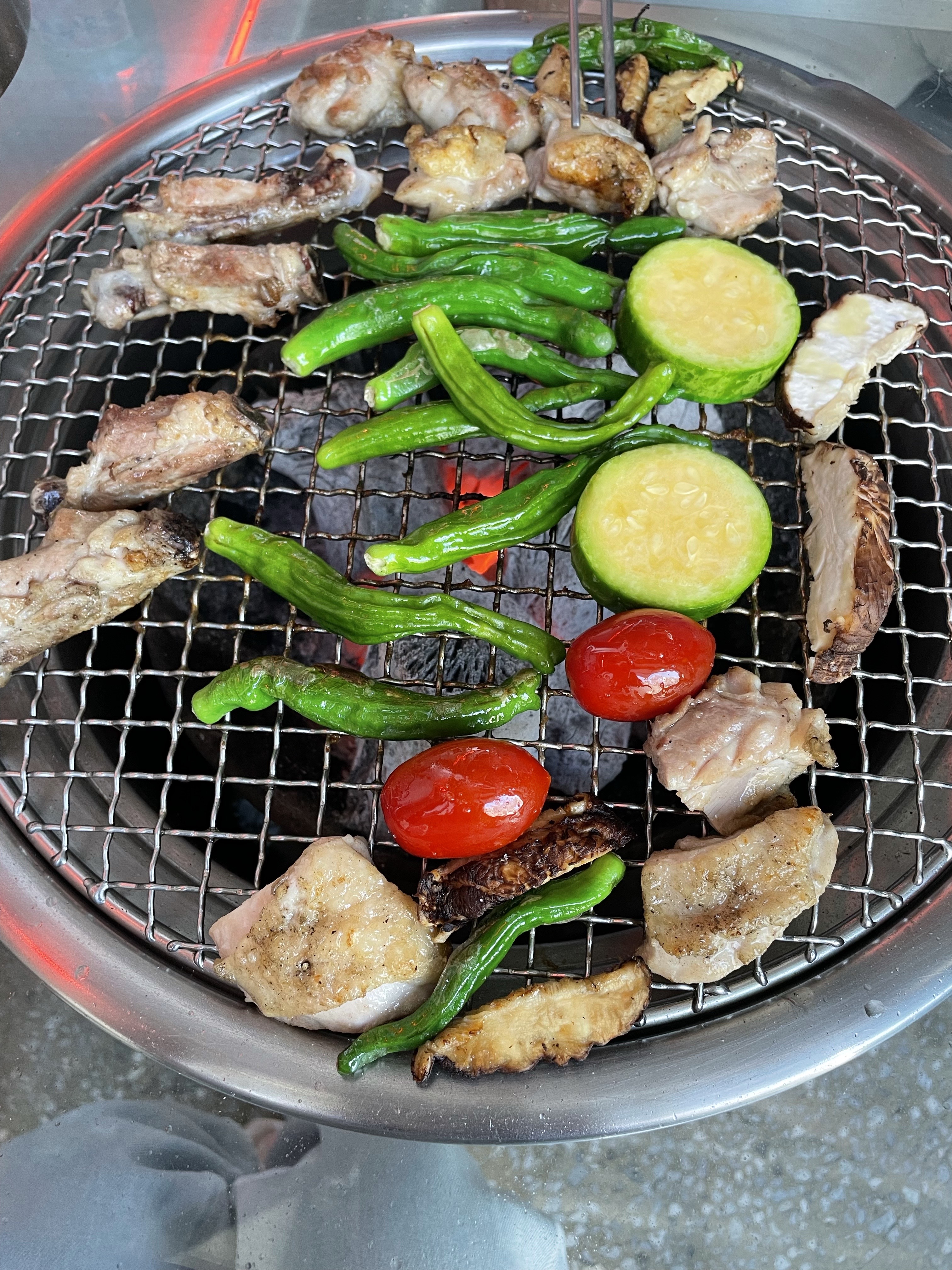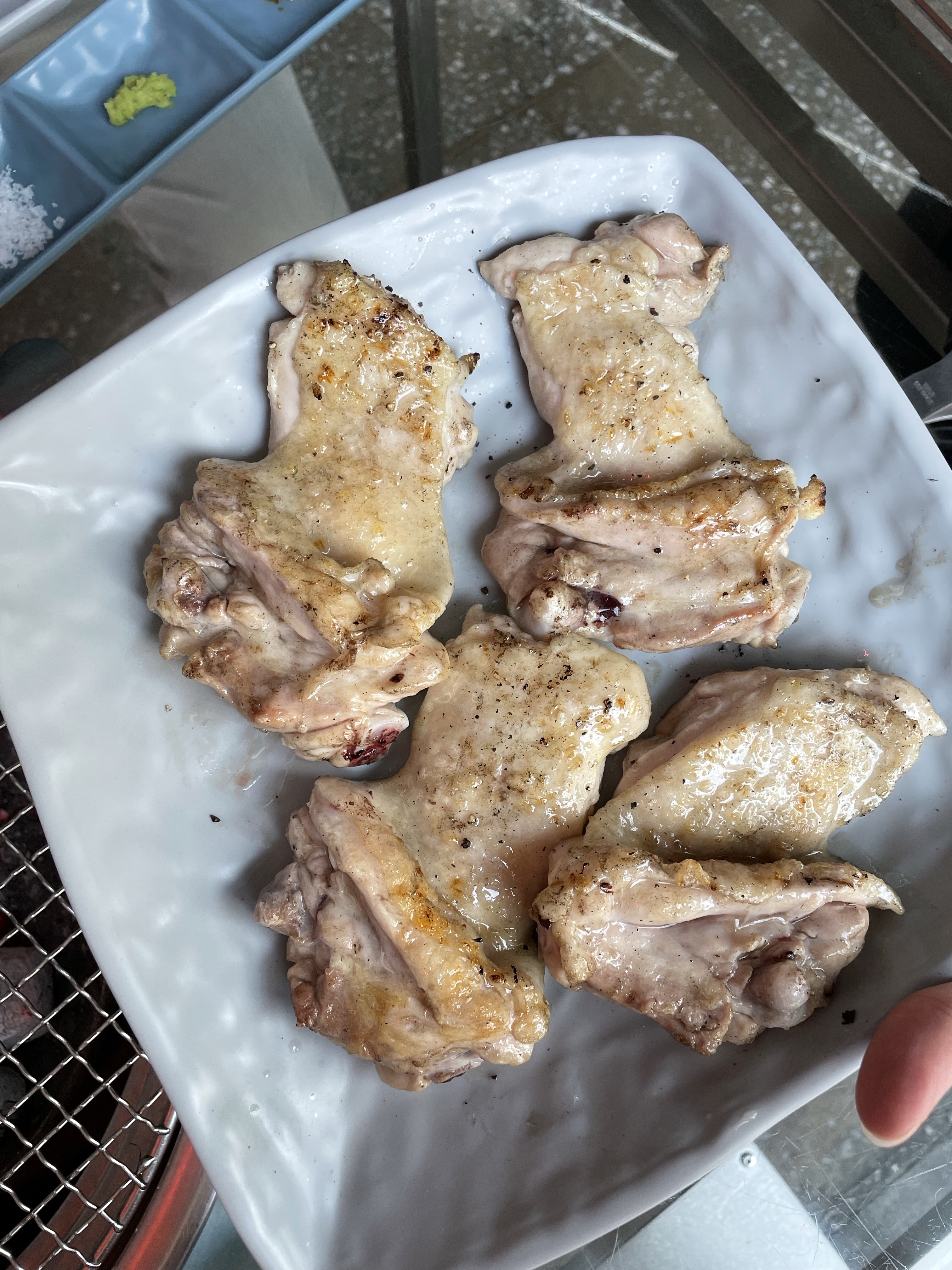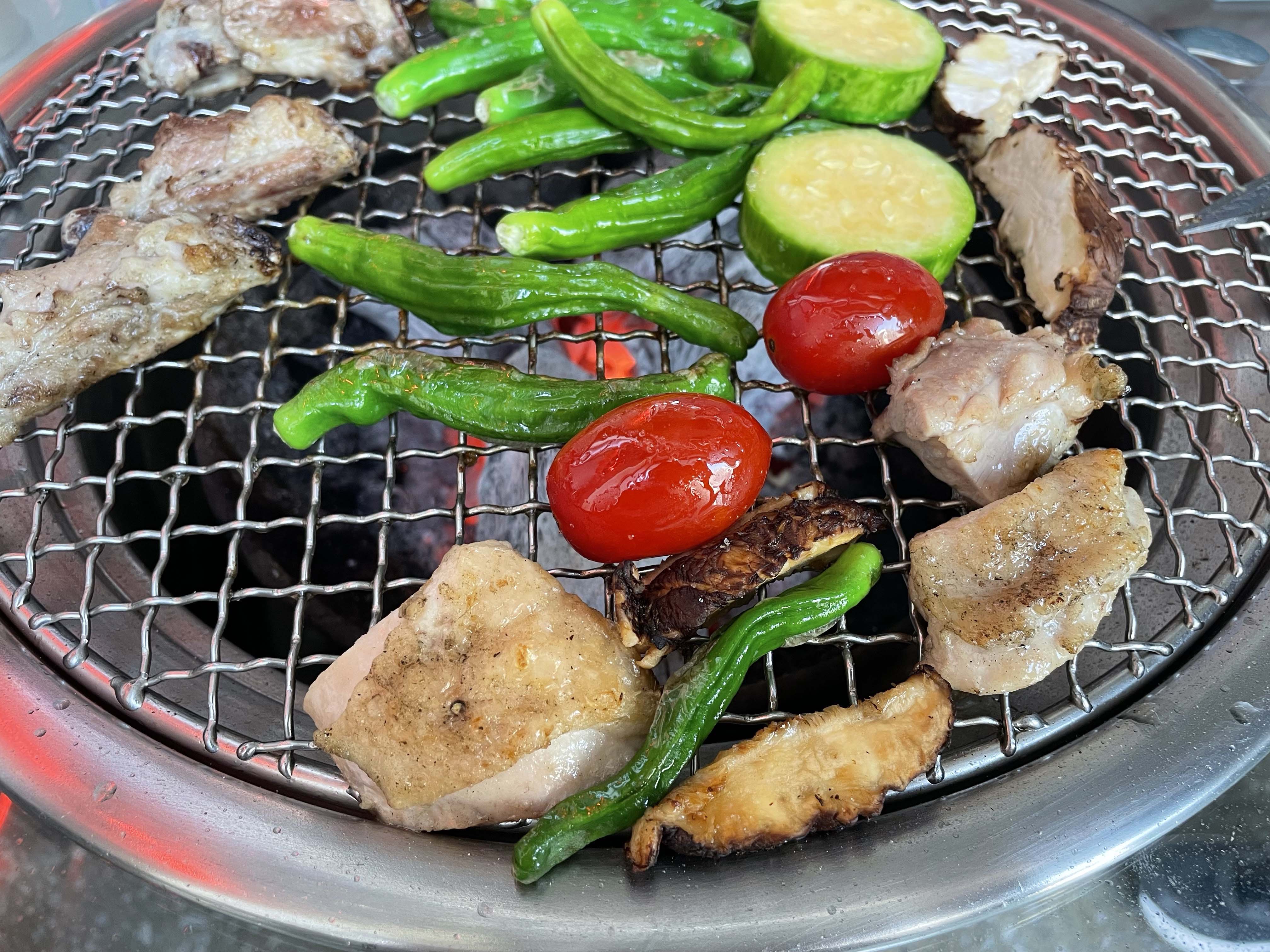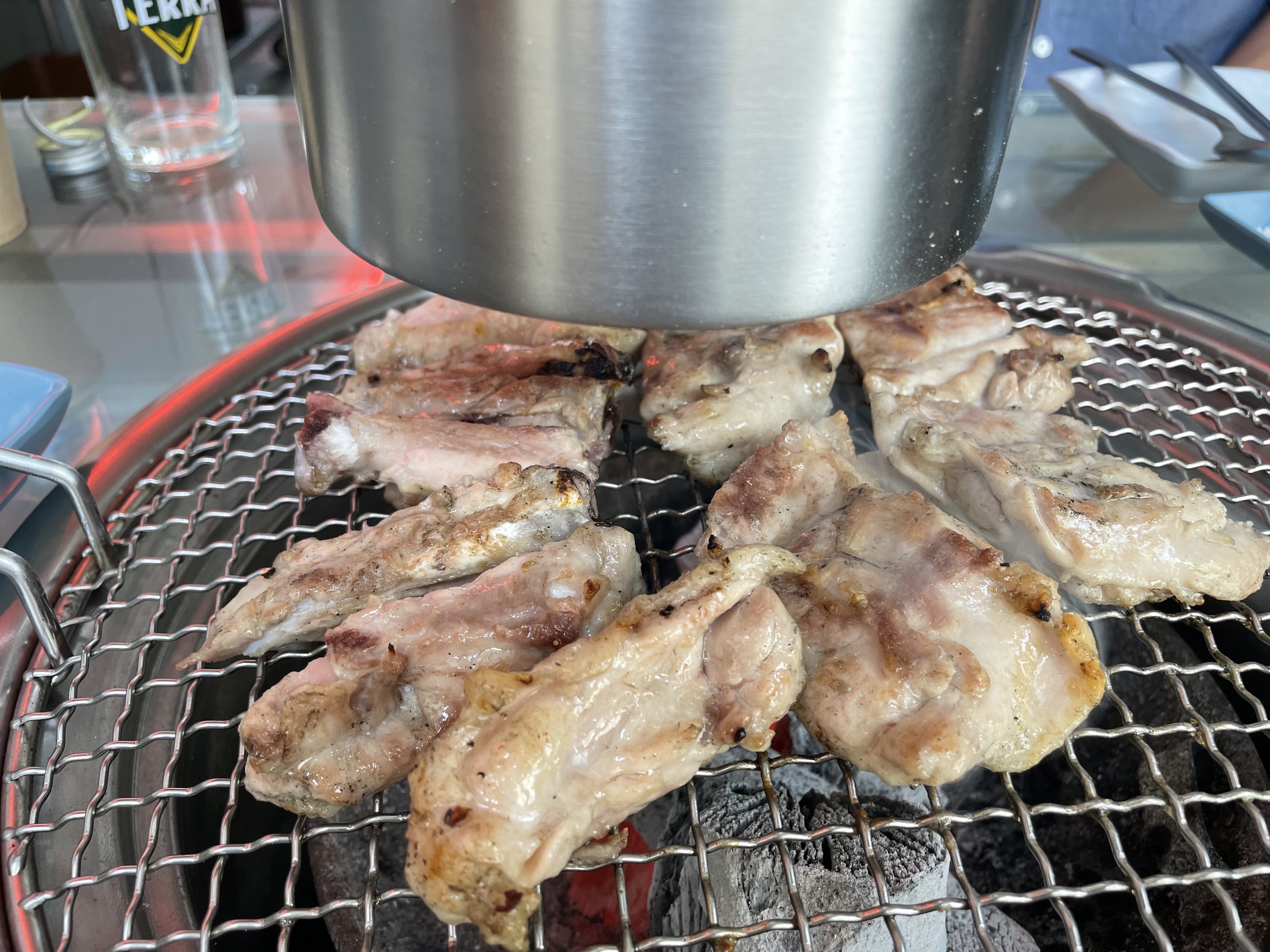 처음엔 소금구이를 주문해 드시고 추가할 땐 양념구이를 시키시는 게 제대로 맛보는 순서. 초벌구이해 나오는 고기는 직원들이 참숯 위에서 앞뒤로 노릇노릇하게 뒤집어가며 처음부터 끝까지 먹기 좋게 구워주니 편하더라고요.