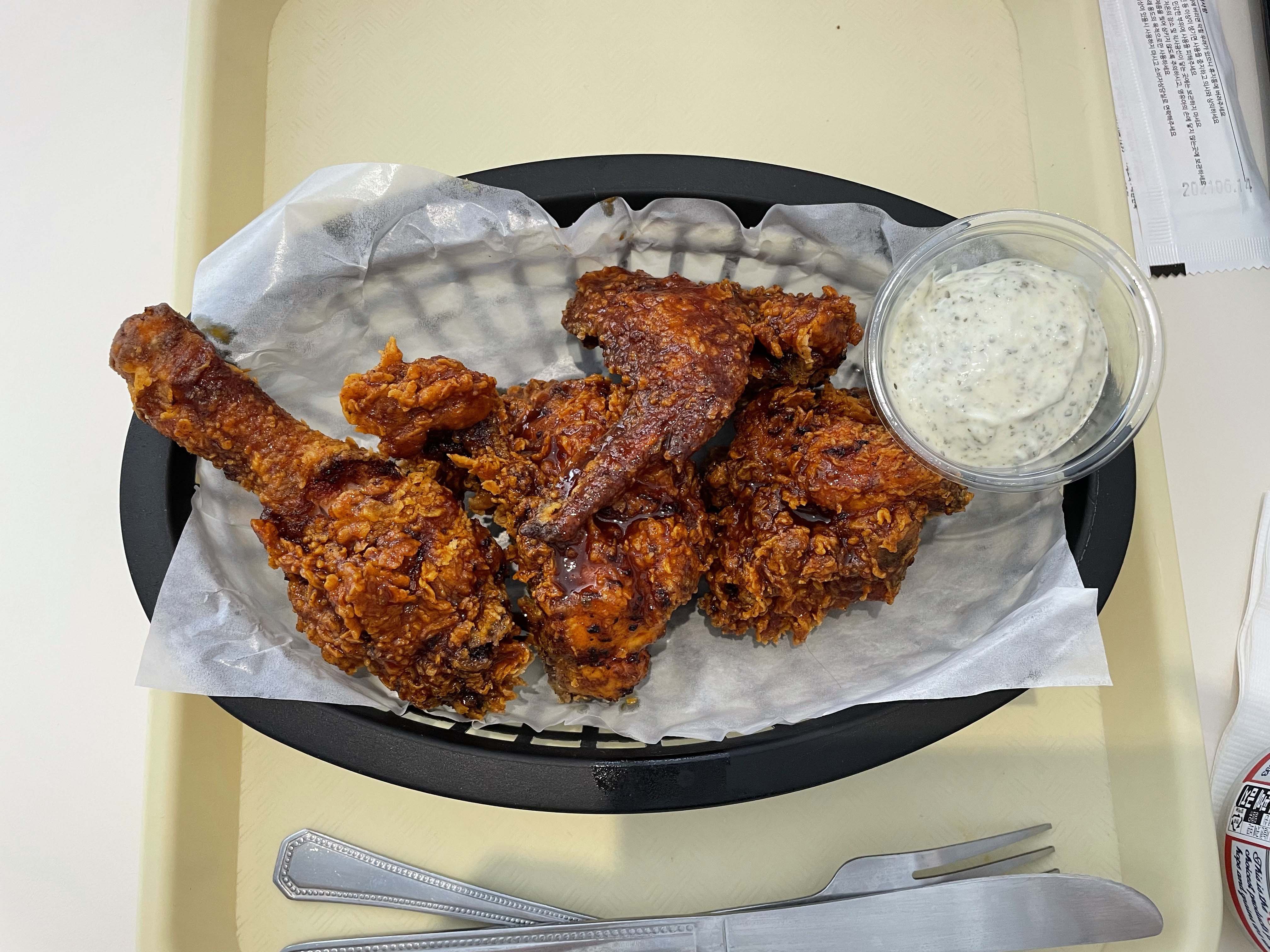 버거뿐만 아니라 치킨도 조각으로 맛볼 수 있는데 일반 프랜차이즈 치킨과는 결이 다른 맛이 매력적이고요, 치킨 역시 매운맛 조절이 가능해요. 입 안에 불이 났을 땐 시원한 콜라나 맥주로 식혀주면 금상첨화.