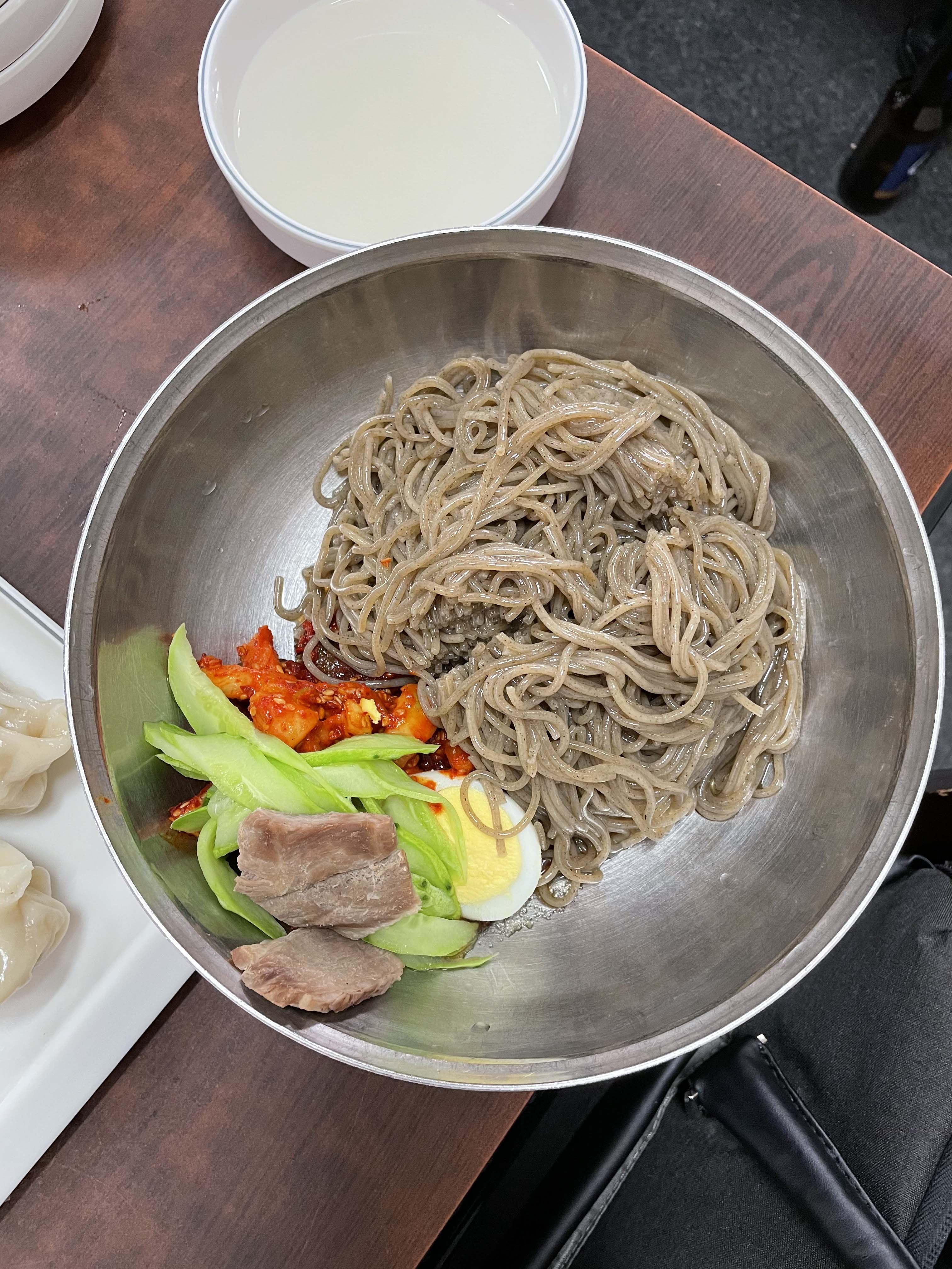 막국수도 별미인데 직접 제면한다고 해요. 양념이 자극적이지 않고 면발도 과하게 쫄깃하지 않고 좋더라고요. 이북 음식 전문점답게 만두도 맛있더군요. 만두국 국물도 담백하고요. 가게 앞 3~4대 주차 가능하니 편하게 이용해보세요.