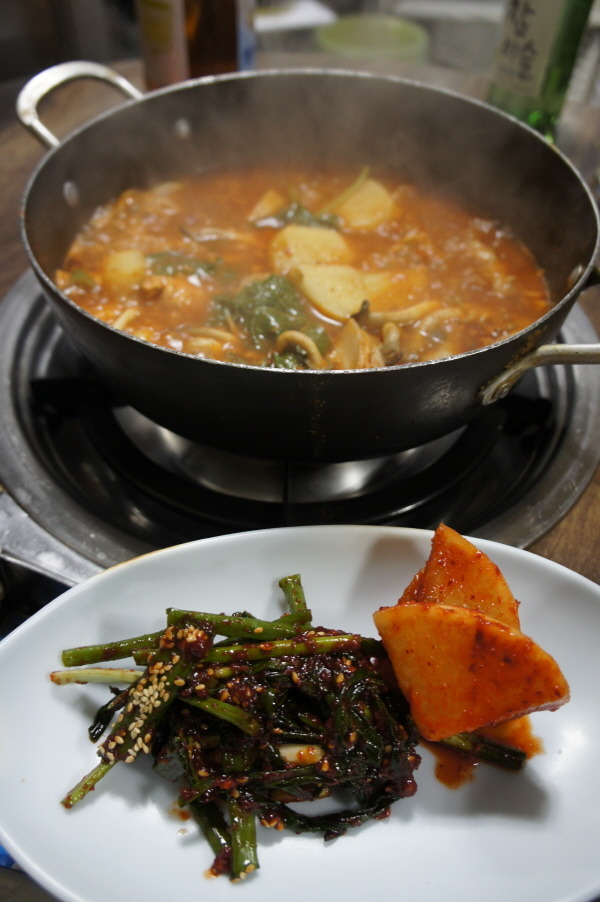 이 집의 찜닭의 맛 비결은 일단 닭 살코기의 적당한 쫄깃함과 부드러움이 입 안에서 팽팽한 줄다리기를 벌이는 듯하지요. 개인 취향에 맞는 비율로 식초·겨자·고추장 양념을 잘 섞어 나만의 소스를 제조해 찍어 먹으면 감동 2배의 맛. 특히 데친 파가 듬뿍 올려져 있는 것이 이 집의 하드캐리. 닭뼈가 하얀 것으로 보아 냉동닭 아닌 것도 확인 가능.