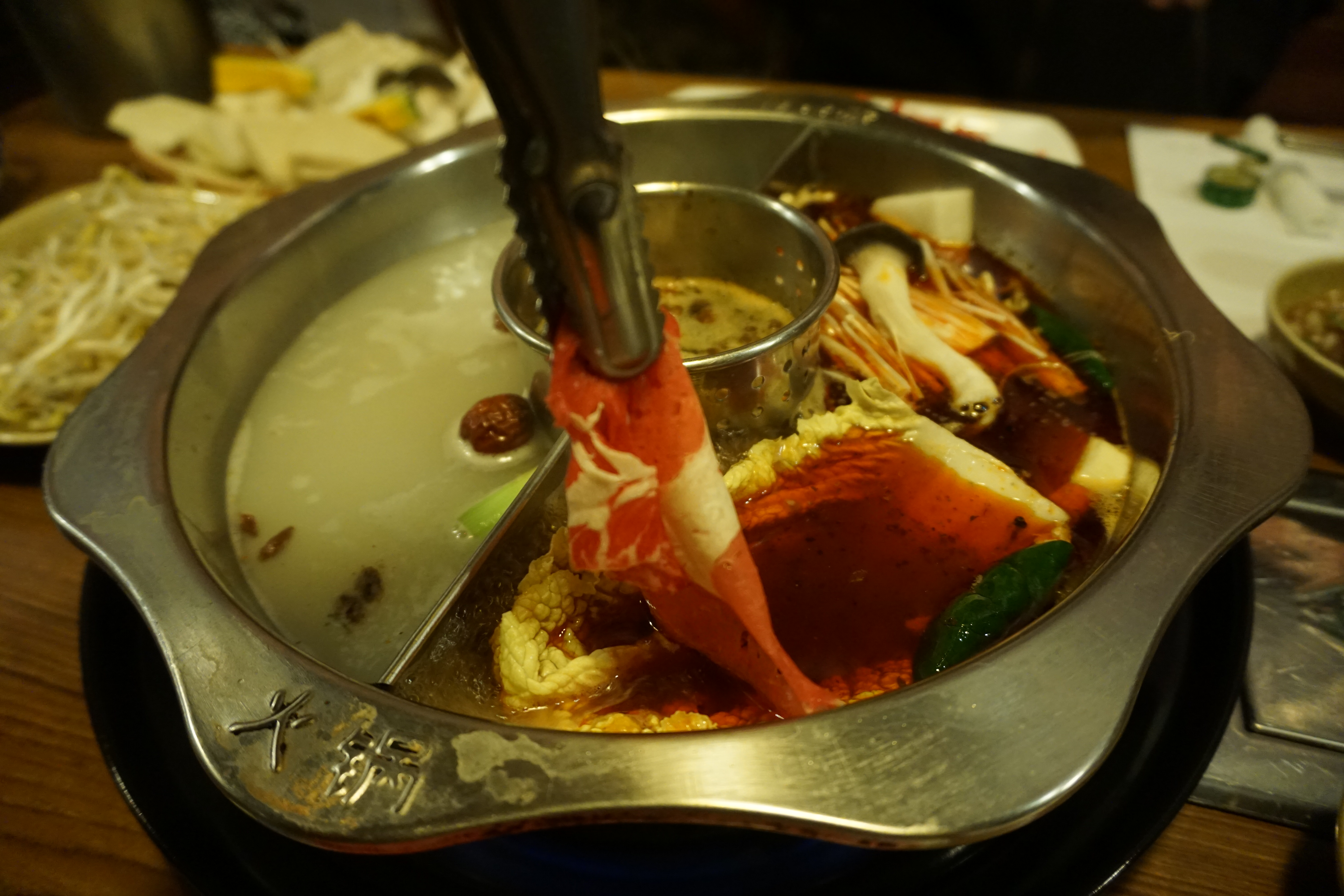 팔각, 정향, 화자오 등 다양한 약재를 사용한 육수에 신선한 고기와 다양한 야채를 넣어 데쳐 먹는 중국의 샤브샤브인 ‘훠궈’도 대표적인 겨울철 보양 메뉴 중 하나죠. 우리나라에 처음 훠궈 붐을 일으켰다는 ‘불이아’는 서교동과 삼성동 등에 위치해 있어요. 냉탕·온탕 아니고 ‘홍탕’과 ‘백탕’으로 칸이 나뉘어진 훠궈 전용 냄비에 양고기 하나, 소고기 하나 시켜서 육수가 끓어오르면 고기를 젓가락에 잡은 채로 사우나에 몸 담갔다 나오듯 살짝 익혀 소스에 찍어 먹으면 그 맛이 일품이죠. 씨뻘건 색의 홍탕은 많이 매울 것 같지만 혀에만 얼얼하게 느껴질 뿐 위 안에서는 속쓰림이 전혀 느껴지지 않더라고요. 면두부, 동두부, 포두부 등 각종 두부와 은이버섯, 죽순 등 재료 하나하나가 건강한 식재료라 든든.