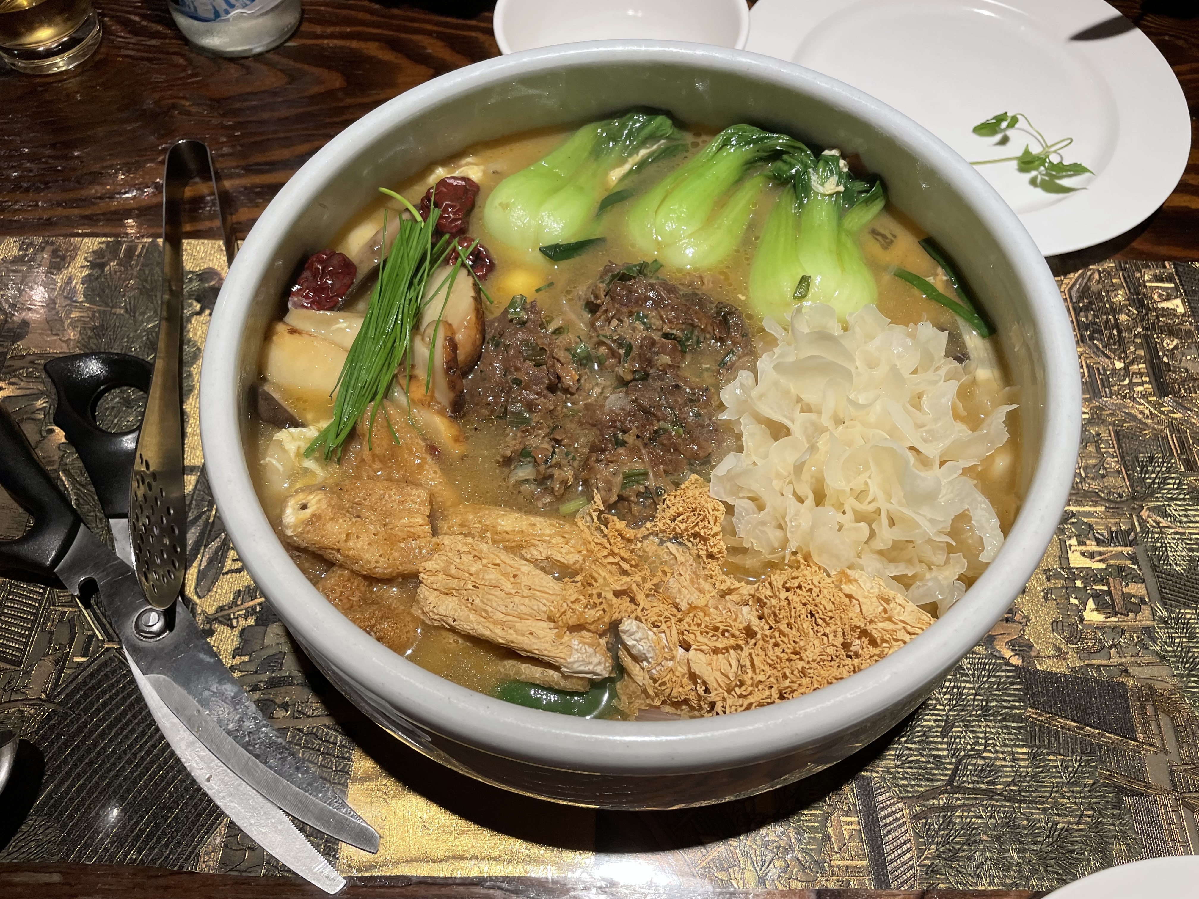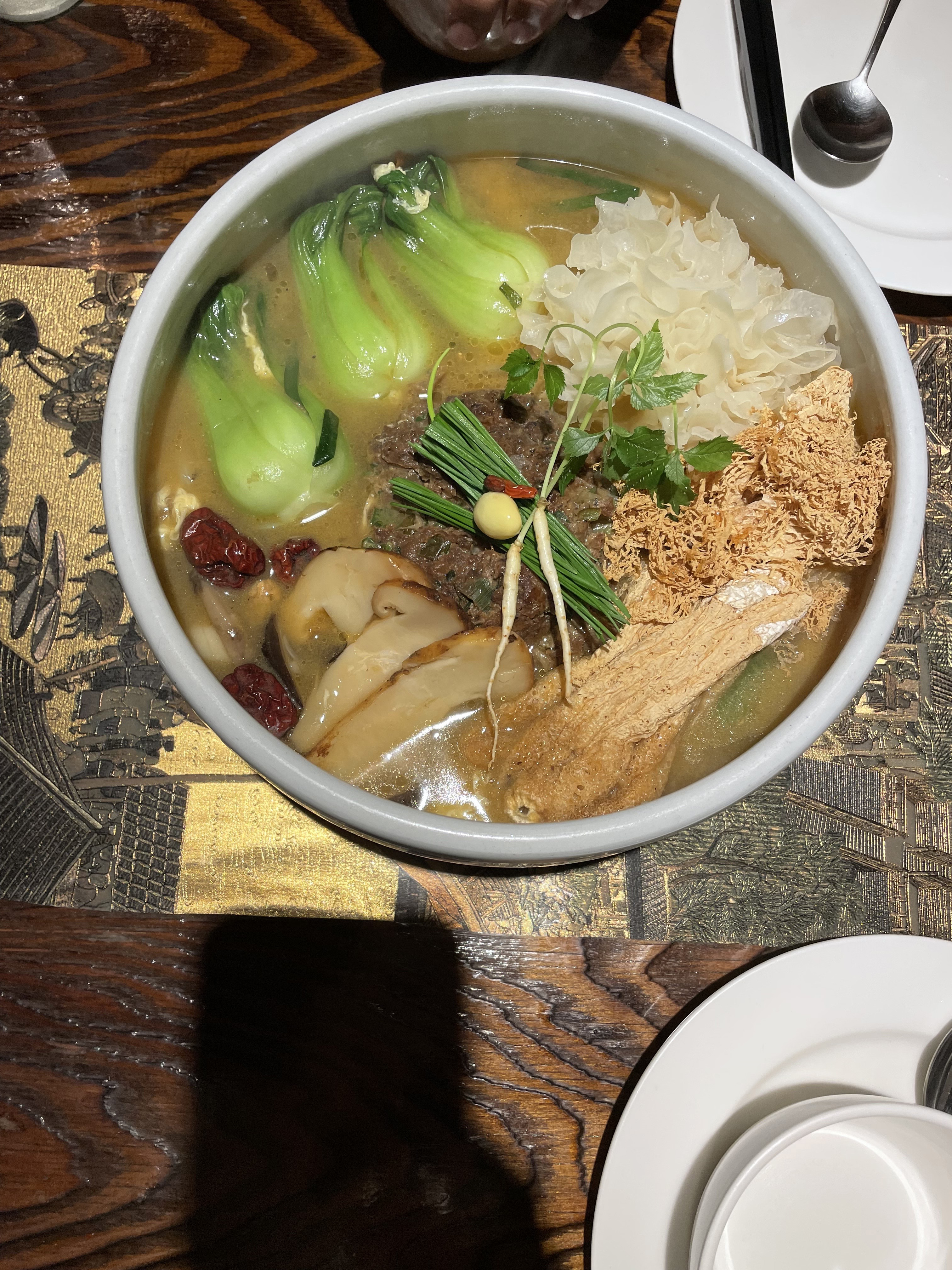 이곳에는 양장피, 동파육 등이 히트 메뉴인데 오늘 주제에 맞게 추천드리고 싶은 요리는 바로 ‘한방사자두 완탕’. 이름도 생소한 한방사자두 완탕은 중국의 10대 요리로 꼽히는 보양식 메뉴인데, 사자두완자와 은이버섯, 송이버섯, 죽생버섯, 흑화고, 망태버섯, 뿌리삼, 청경채 등 귀한 식재료가 듬뿍 들어있는 일품 탕요리입니다.