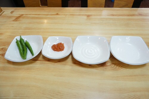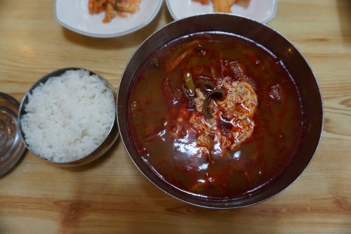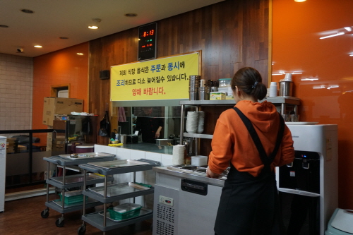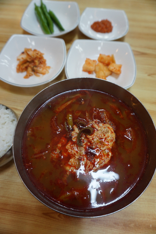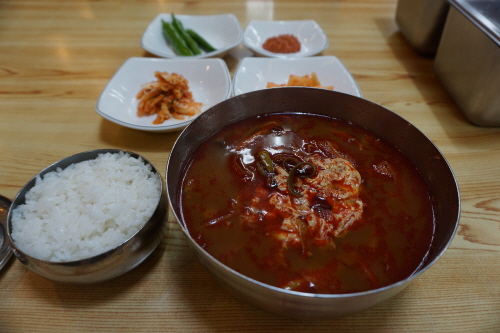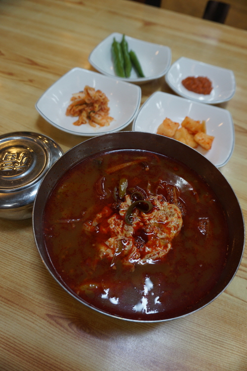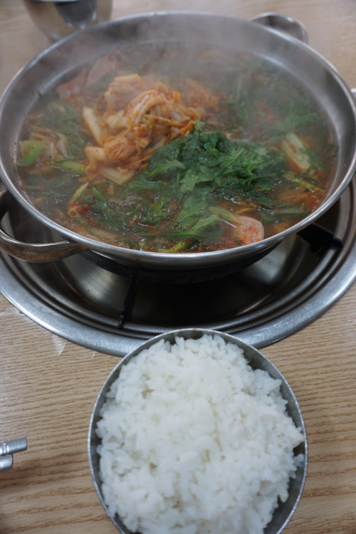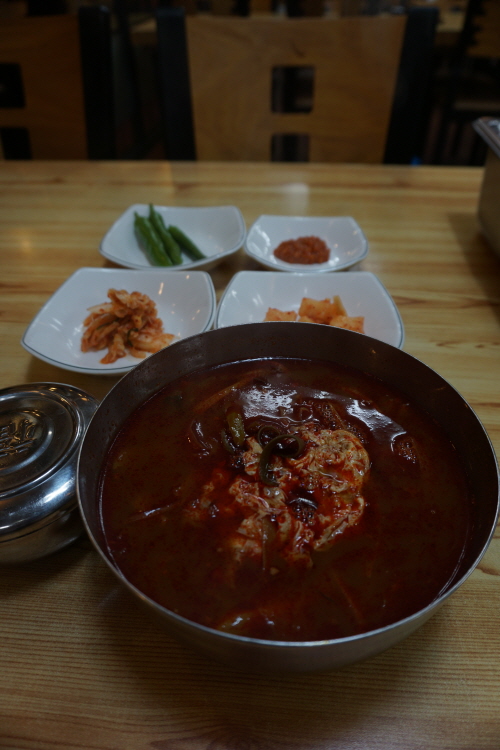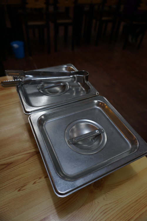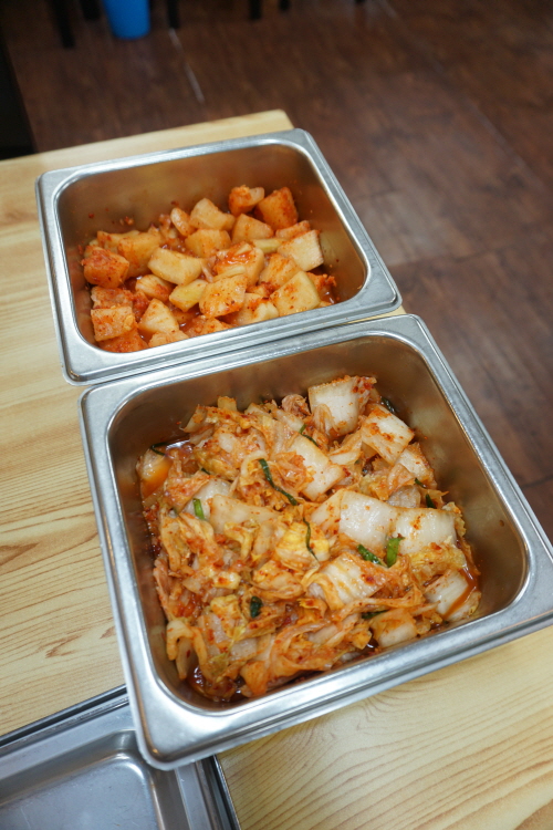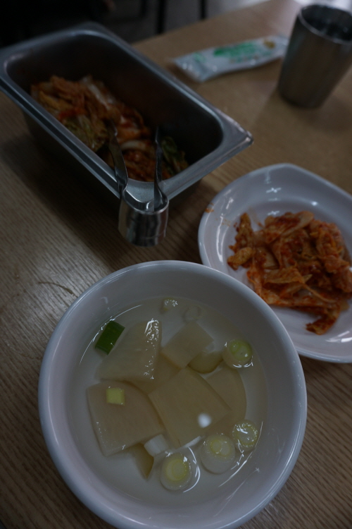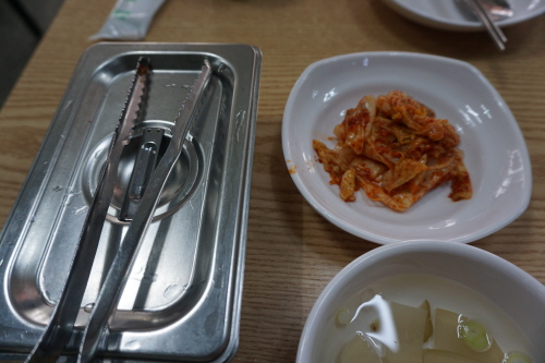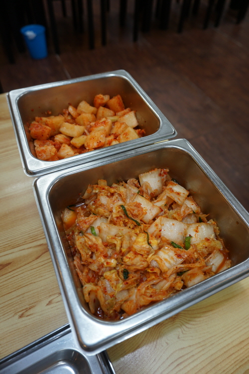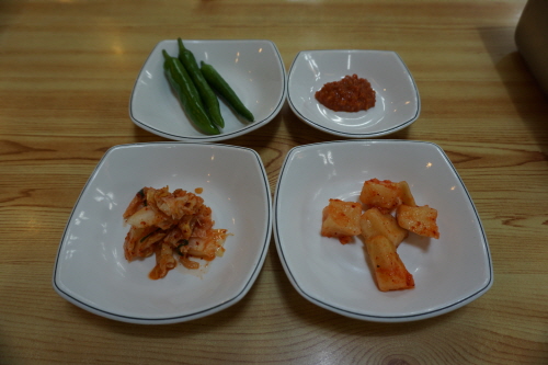 밑반찬 가짓수가 좀 부족한 것은 흠이지만 김치를 덜어먹을 수 있도록 한 시스템은 굿. 뚜껑 있는 그릇에 담겨있는 것도 칭찬해.