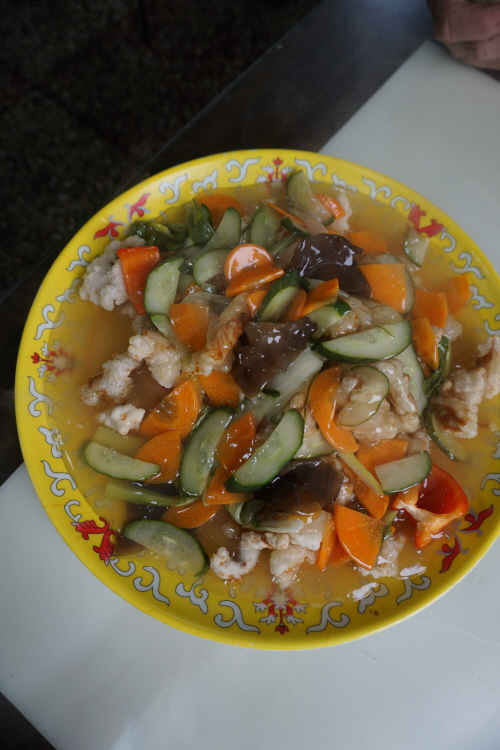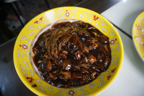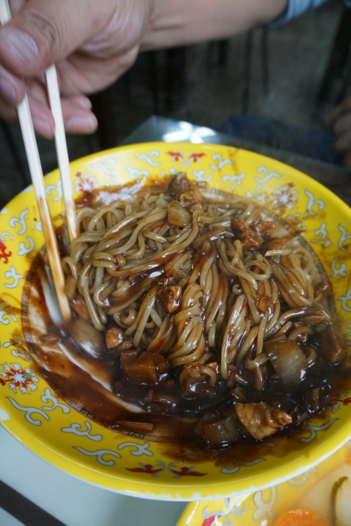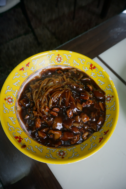 재료도 튼실하고 면발 역시 좋은편. 일반짜장면도 동네 배달 중국집 수준에 비하면 엄지 척. 개인적으로는 잘게 다진 것보다 이렇게 큼직큼직하게 썬 것이 좋다는...