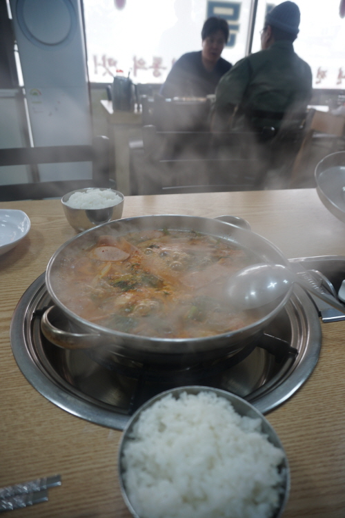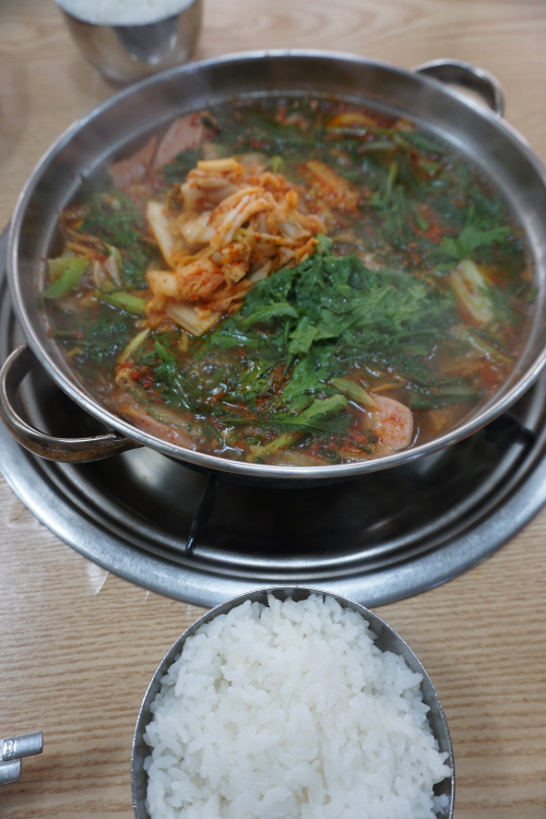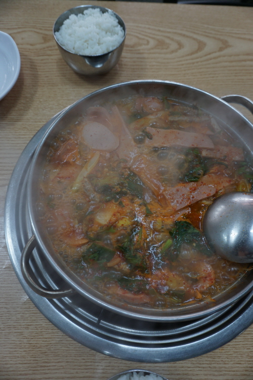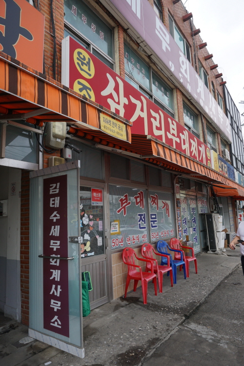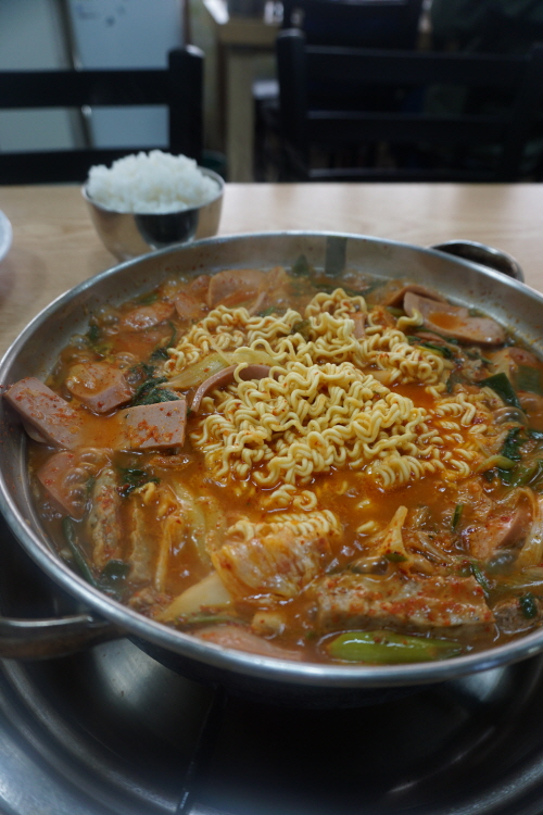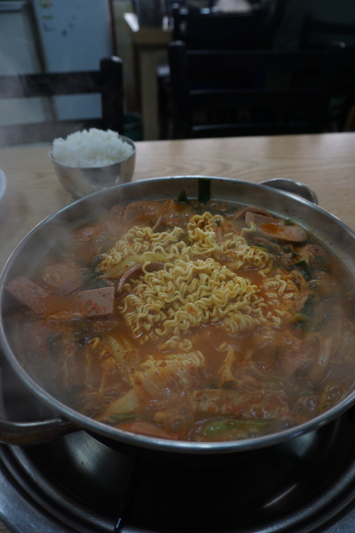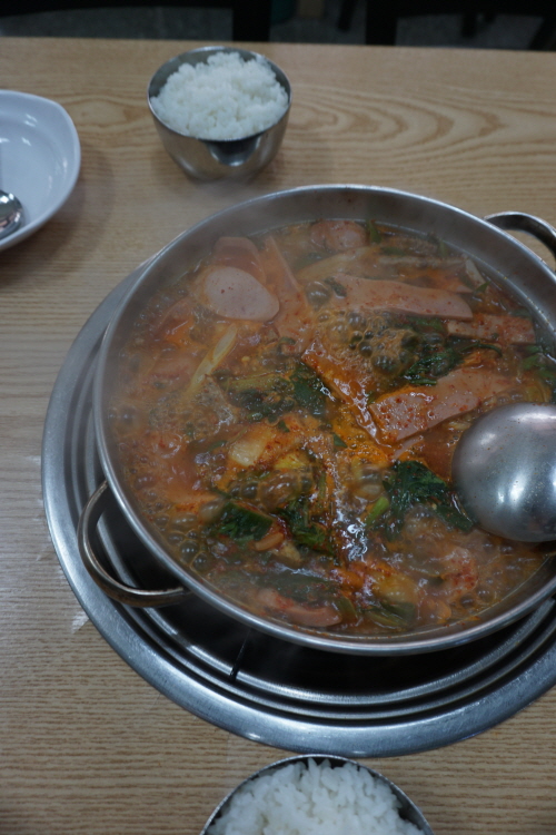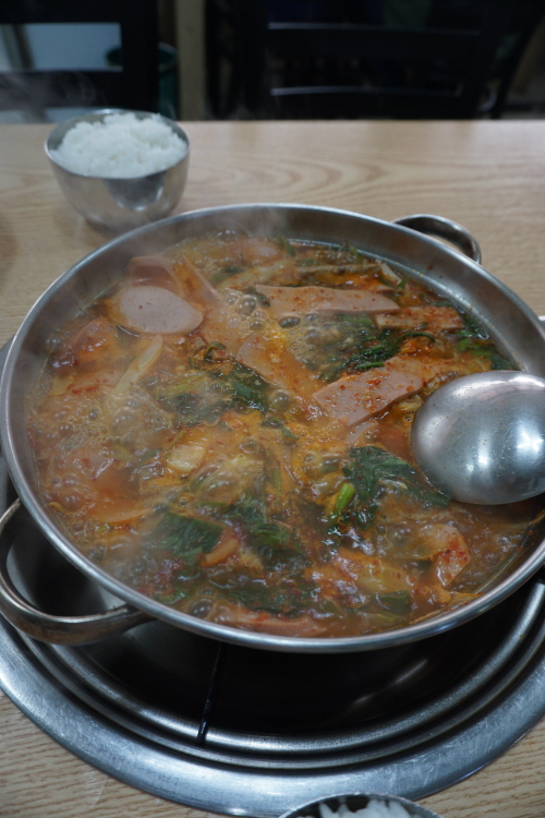 자극적이거나 라면수프 맛 일색인 식당이 대부분이라 그다지 좋아하지 않는 메뉴인 부대찌개임에도 주바리 입맛을 사로잡은 곳이 바로 ‘삼거리부대찌개’예요. 국물이 깔끔해서 매력인 곳이죠.