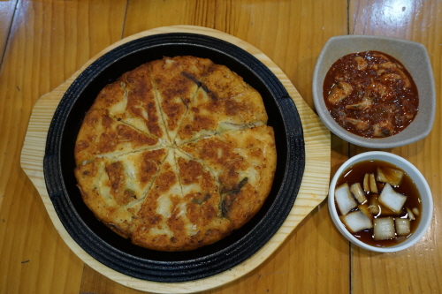 ‘식객’에 소개된 메뉴인 녹두전은 어리굴젓을 곁들여 먹을 수 있는 게 특징.