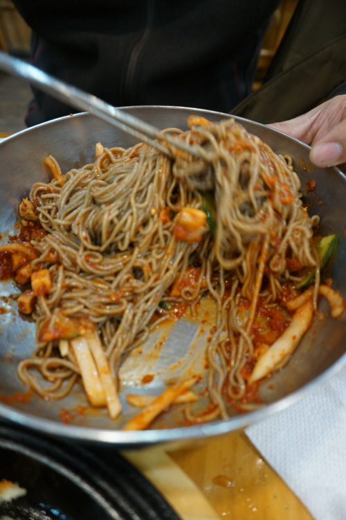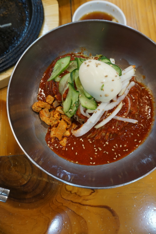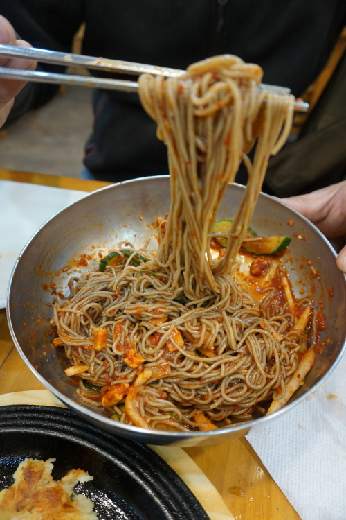 녹두전이나 만두보다 이 집은 오히려 막국수가 더 일품이더라고요. 양념이 지나치게 자극적이지 않고 메밀의 향과 식감이 제대로 느껴지는 면발이 합격점.