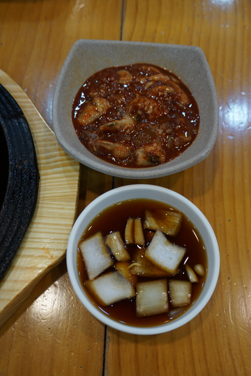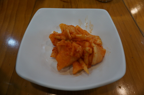 덜어먹도록 돼있는 김치 깍두기 맘에 들고요. 맛은 뭐 쏘쏘~