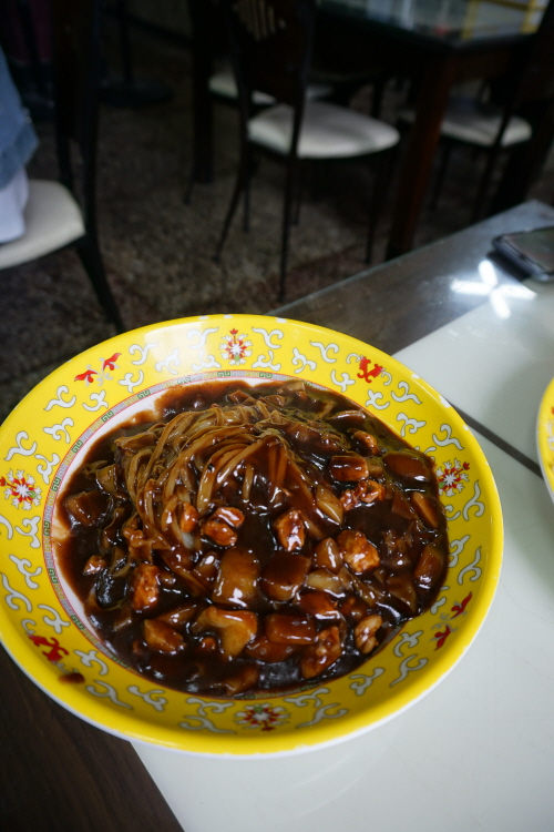 탕수육과 함께 이 집 시그니처 격인 유니짜장. 잘게 다진 고기가 특징이고요...고추를 사용했는 지 꽤 맵습니다. 느끼함 없이 먹기에는 굿이지만 어린이들에겐 비추.
