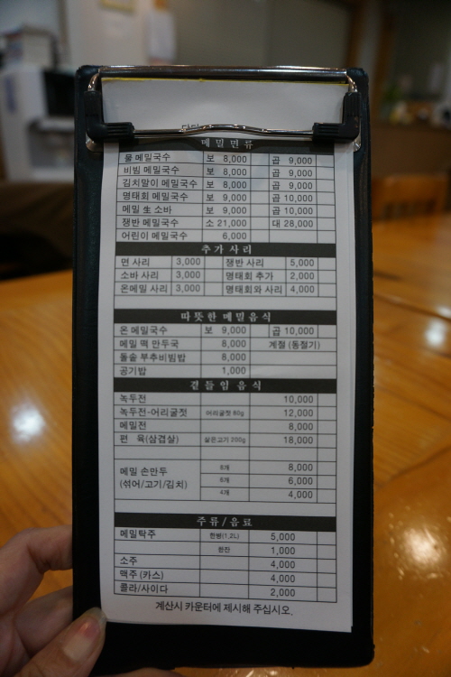 메밀 위주의 적당한 가짓수의 메뉴들. 가격 쭉 확인해보시고요.