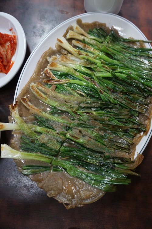 요것도 별미인데요. 메밀전 위에 파를 듬뿍 올려서 아주 향기롭습니다. 파를 좋아하신다면 찜닭과 함께 꼭 드셔보실 만.