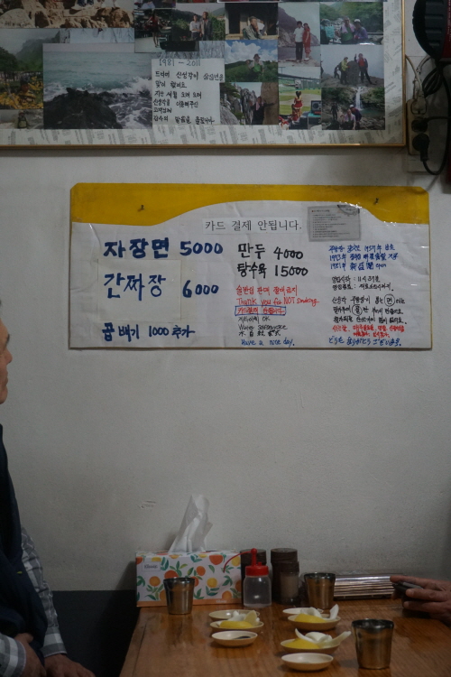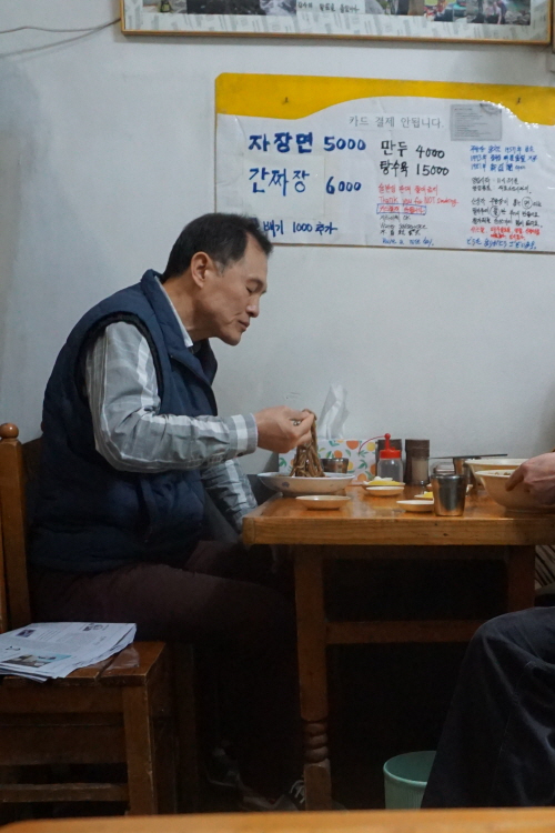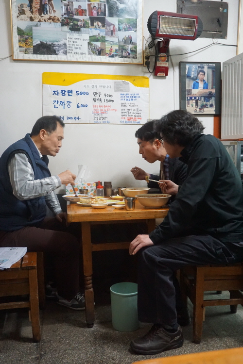 옆 테이블에서 맛있게 짜장면 드시는 이 분들,,,,사실 일행이 아니랍니다.. 모두 혼자 오셔서 합석하게 된, 하지만 만두도 쉐어해 드시는 모습 보기 좋네요 ㅎㅎ