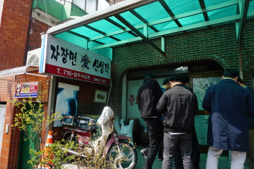 수타 짜장면 맛집으로 소문난 ‘신성각’은 효창구장 옆에 위치해 있어요. 집 근처지만 자주 가지는 못하는 곳(대기 ㅎㄷㄷ) 영업 시작 시간은 오전 11시 37분, 봉테일을 닮은 이 디테일 뭔가요? ㅋㅋ. 또 오후 4시면 문을 닫는데 재료가 떨어지면 그 안에 마감하기도 한다고. 매일 직접 수타를 하시는 사장님의 어깨 상태가 좋지않아서 그렇다니 이해하는 것으로….