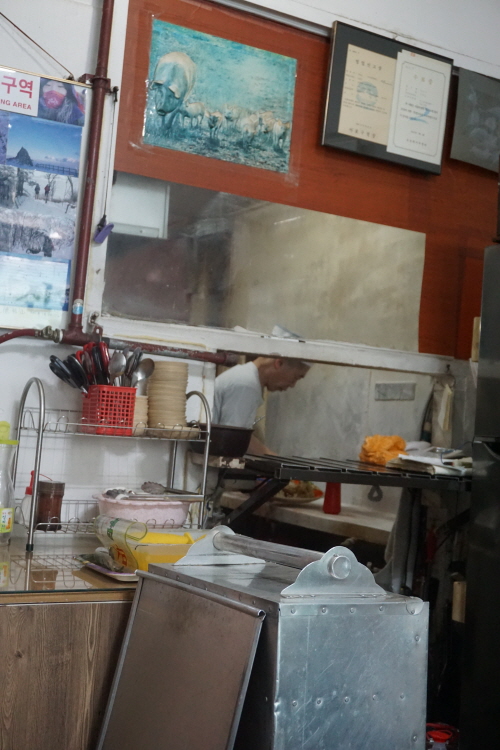 주방쪽으로 보이시는 저 분이 수타의 달인.... 이쪽 테이블에 앉으면 요란한 소리와 함께 수타를 치는 광경을 감상할 수 있죠.
