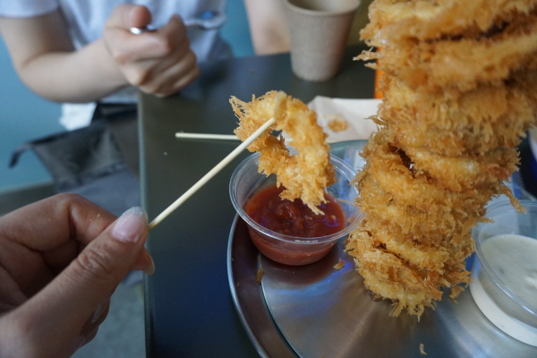 이 집의 ‘칼라마리타워(오징어 튀김이 탑처럼 플레이팅돼 있는)’는 꼭 드세요. 2번 드세요. 느끼함을 잡아주는 수제소스가 이 집만의 비법이네요.