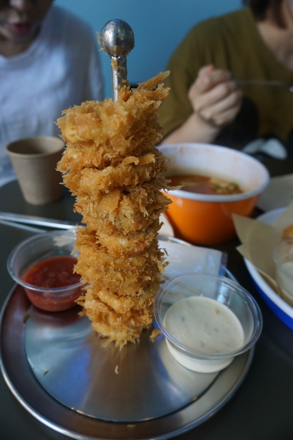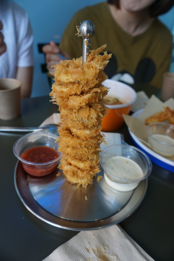 이 집의 ‘칼라마리타워(오징어 튀김이 탑처럼 플레이팅돼 있는)’는 꼭 드세요. 2번 드세요. 느끼함을 잡아주는 수제소스가 이 집만의 비법이네요.