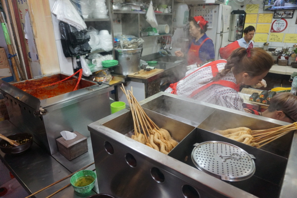 원래 두꺼운 쌀떡볶이에는 양념이 잘 안 배어드는데, 중탕으로 미리 조리한 떡을 양념과 섞어 익히는 것이 나누미떡볶이 맛의 비법.