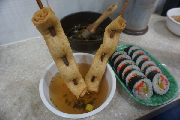 어묵과 순대, 김밥도 세트메뉴처럼 꼭 먹어야 할 메뉴죠. 특히 김밥은 집에서 엄마가 싸준 듯 심심한 맛이 취향을 저격합니다. 부산에서 공수했다는 어묵도 덜 익거나 불어터지거나 한 적 없이 늘 적당한 식감으로 내어주죠. 무엇보다 먹고난 후 입 안에 조미료 맛이 안 남는 것이 나누미떡볶이의 최고 매력이죠.
