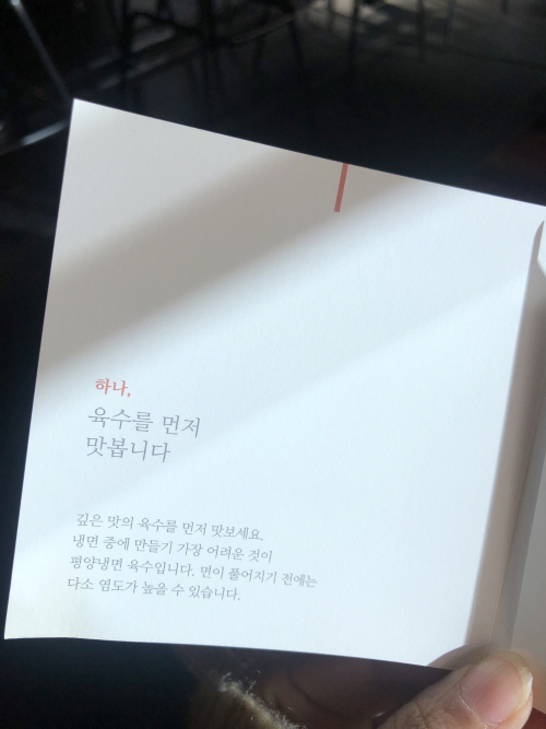 1등 우OO-2등 평O면옥-3등 필O면옥-4등 정O면옥 등이 제가 꼽는 평냉집 순위이지만(물론 이건 어디까지나 개취), 올해 부쩍 오른 가격도 가격이거니와 줄서는 것도 마뜩잖아 오히려 여름에는 가는 것을 꺼린답니다. 그래서 아직은 조금 덜 알려진 덕에 대기 없이 맛있는 ‘평뽕’에 취할 수 있는 평양냉면 집을 몇 군데 ‘들고’ 왔어요. 눈으로 한번 미리 후루룩 해보실까요?