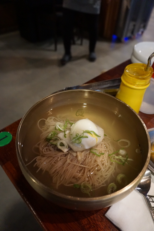 자가제면은 당연하고 고깃집이다 보니 한우를 사용해 깊은 육향이 살아 있는 국물이 특징이에요. 면의 메밀 함량도 80%와 100% 순면 선택이 가능하다니 대충 만드는 평냉이 아니라는 걸 확인할 수 있죠. 전체적으로 깔끔한 식당 인테리어와 수제 맥주에도 보너스 점수를 주고 싶네요.