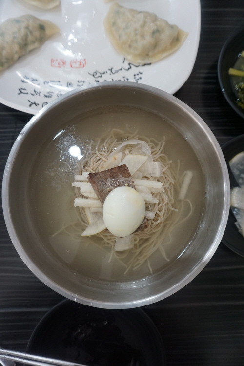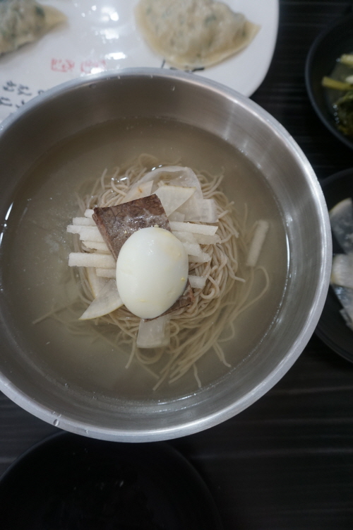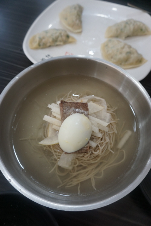 평양냉면은 아까 설명한 대로 투박함 그 자체... 툭툭 끊기는 면발과 진한 육향이 발란스가 괜찮네요.