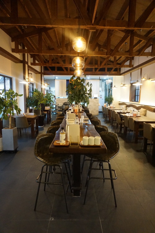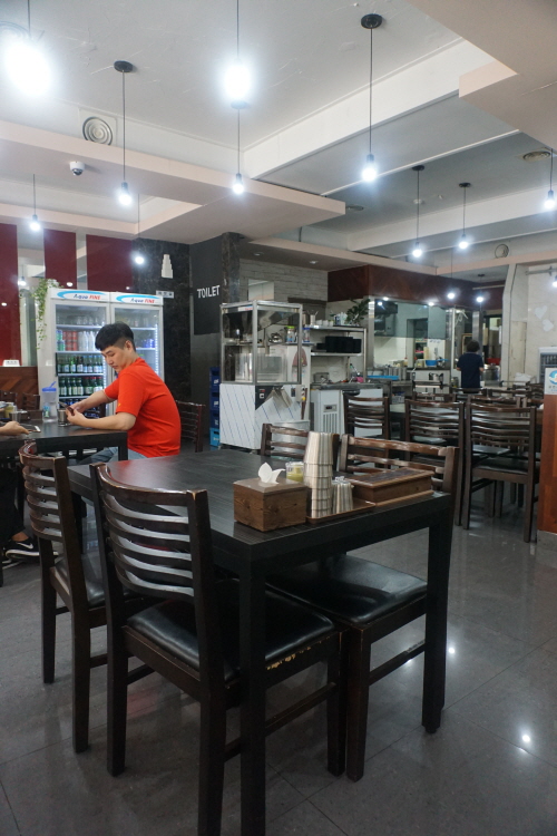 화장실 방향 쪽에서 본 매장 풍경.... 중앙에는 1인이 먹기 편한 긴 테이블 좌석도 있어요.