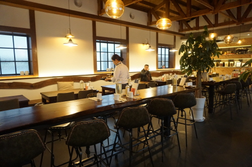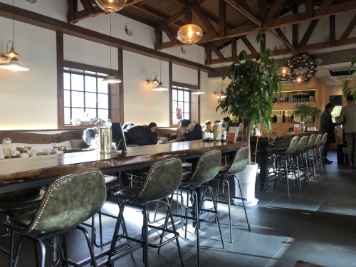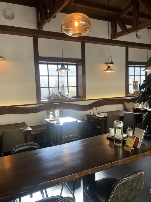 화장실 방향 쪽에서 본 매장 풍경.... 중앙에는 1인이 먹기 편한 긴 테이블 좌석도 있어요.