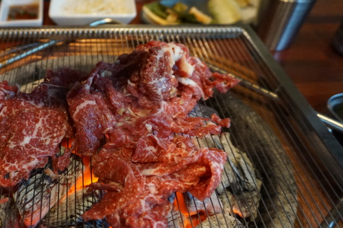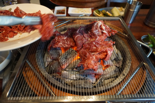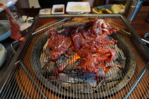 냉면 때리기 전 직화 소불고기부터 한 판.