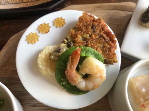 녹두 전등 각종 전.... 꽃 모양은 간장소스를 굳혀서 젤리처럼 만들었어요. 깨알 같은 디테일이 사랑스럽네요.