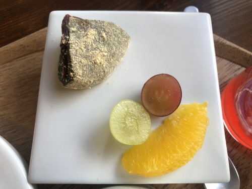 디저트는 오미자 음료와 떡&과일 모둠으로... 비주얼이 진짜 예술이지요?