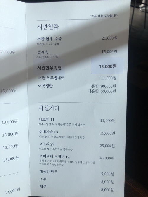메뉴판 한 번 쓱 스캔 들어가시고요.