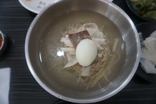 평양냉면은 아까 설명한 대로 투박함 그 자체... 툭툭 끊기는 면발과 진한 육향이 발란스가 괜찮네요.