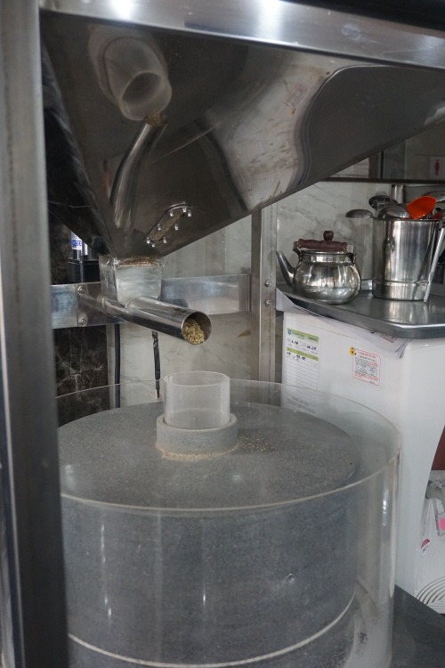 평양옥은 100% 순메밀 평양냉면을 선보이는데, 면의 찰기를 보완하기 위해서 대형 현무암 맷돌을 제작해 아주 곱게 가는 방식을 선택했다고 해요. 올해 들어 1000원 오른 가격이 1만원이니 1만 7000원(순면)이나 하는 B모 식당과 비교하면 아주 착한 가격이죠. 그것도 강남 한복판에서….
