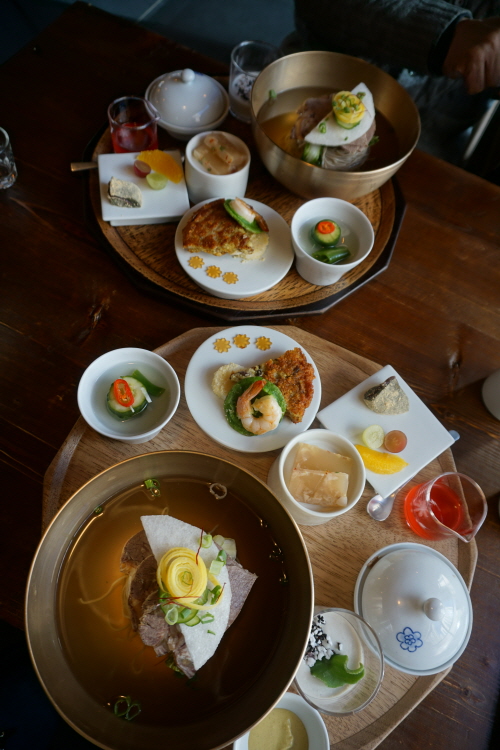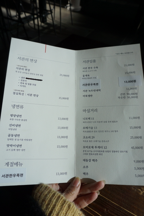 ‘선주후면’을 즐겼다는 다산 정약용의 냉면에 관한 글귀에도 등장하는 ‘서관’은 황해도와 평안도를 아우르는 말이라네요. 한옥의 고풍스러움에 모던한 인테리어를 접목한 매장 분위기에 첫인상은 일단 합격.