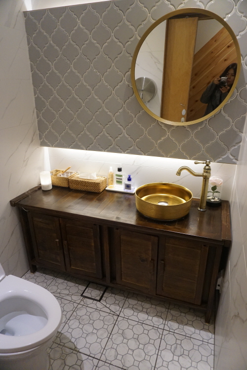 중간에 잠깐 다녀온 화장실에 한번 더 감동... 오픈 초기라 더 그렇겠지만 건식에다가 깔끔한 인테리어가 취향 저격. 어머 이건 찍어야 돼.