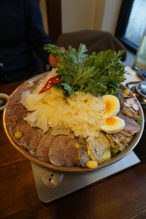 다른 때 재방문해서 조아라 하는 어복쟁반도 맛봤는데요.. 고기의 종류도 다양하고 야채도 적당히 있어 추천할 만하더라고요.