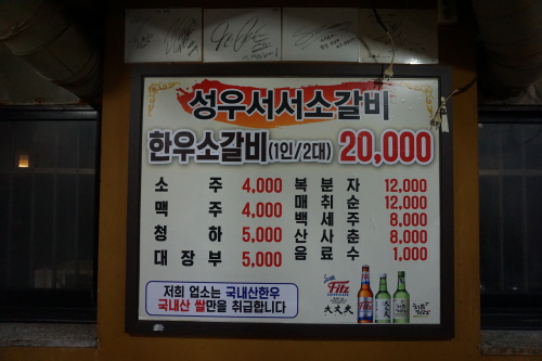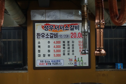식사메뉴는 따로 없고 공깃밥만 주문 가능한데 몇 점 남은 갈비와 잘 익은 총각김치만으로도 식사는 게임 오버. 영업시간은 오후 4시부터.