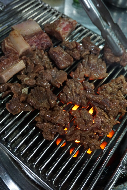 좀 느끼하다 싶을 땐 칼칼한 상추 겉절이를 곁들여 먹으면 금삼첨화예요. 1인분에 2만원으로 국내산 한우치고는 저렴한 가격에 ‘폭풍먹방’을 하다 보면 연탄불 위 ‘소느님’은 어느새 자취를 감춘 뒤죠. 평소 먹는 양이 그리 많지 않아 2명이 3인분으로 충분했던 주바리도 “2인분 더”를 2번이나 외쳤던 경험도 있지 뭡니까.