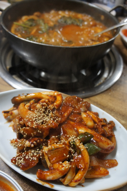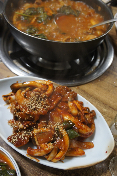 닭볶음탕이나 오삼불고기 등 메인메뉴를 주문해야만 맛볼 수 있는 닭꼬치는 슬프게도 1인당 2꼬치로 주문이 제한돼 있어요. 멋모르고 처음 갔을 땐 일단 1개씩만 맛보고 추가 주문하기로 했는데 도저히 한 꼬치로는 멈출 수 없는 그 맛에 ‘1꼬치 더’를 외쳤지만 한정된 수량과 굽는 시간이 오래 걸리는 탓에 맛보지 못했던 아련한 기억이….